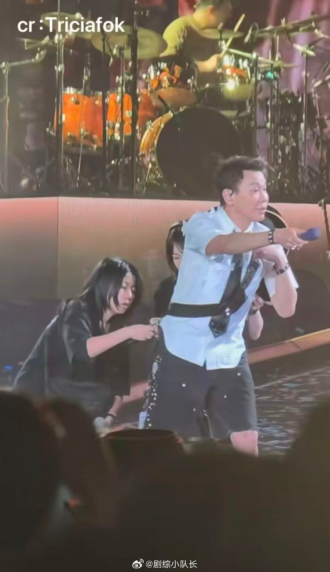 陶喆又闯祸被工作人员追着跑 工作人员一个箭步冲上去,陶喆一个急转弯闪开。两人在舞台上演起了追逐戏,观众席已经笑成一片。这吉他,怕是摘到明天也摘不下来。