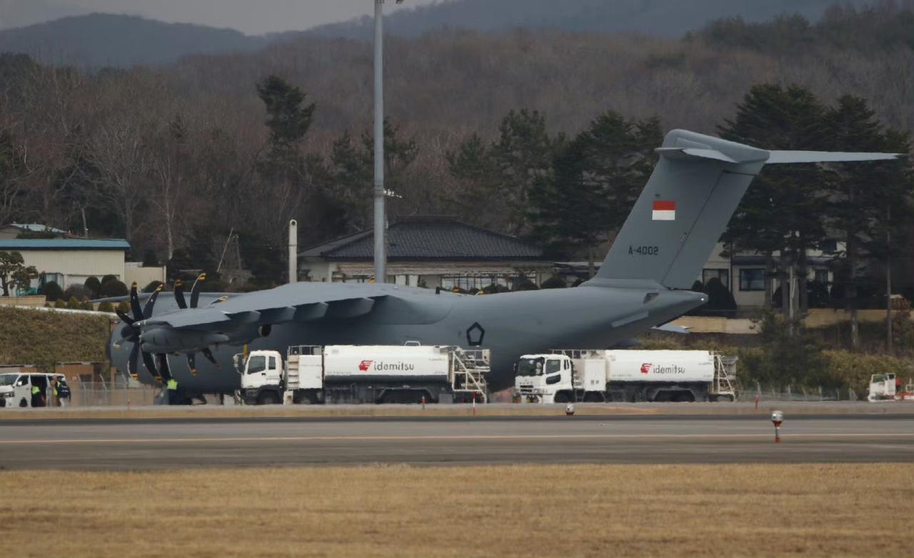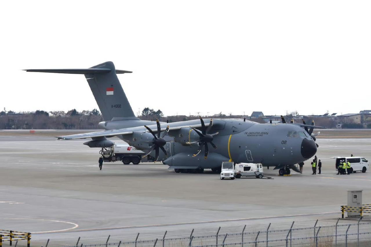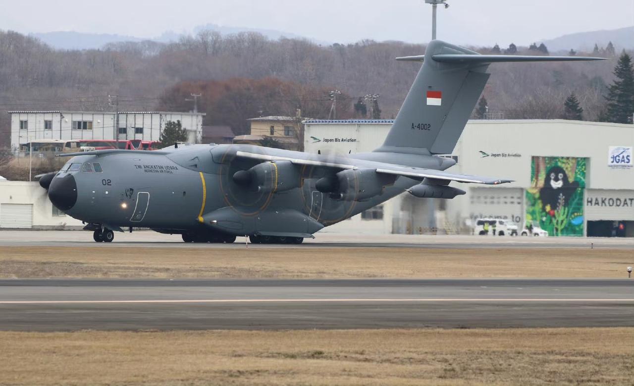 印尼空军订购的第二架A400M运输机A-4002回国途中经停日本函馆机场。 印度尼西亚于2022年订购2架A400M运输机,全部列装驻扎哈利姆·珀达纳库苏马机场的印尼空军第31空运中队。