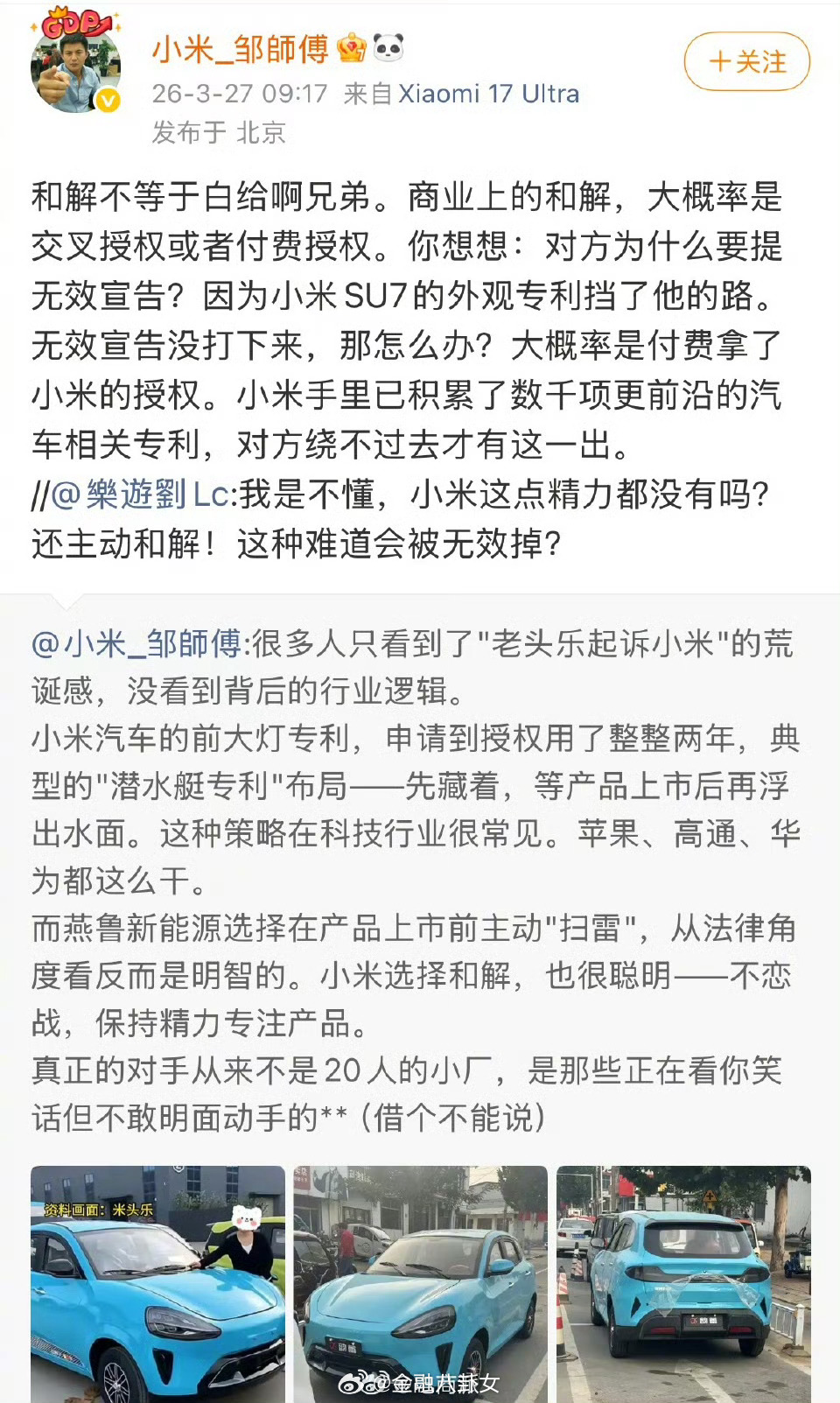 小米邹师傅爆猛料,和老头乐和解不是白给,真正的对手不是20人小厂,而是不敢明面动手的