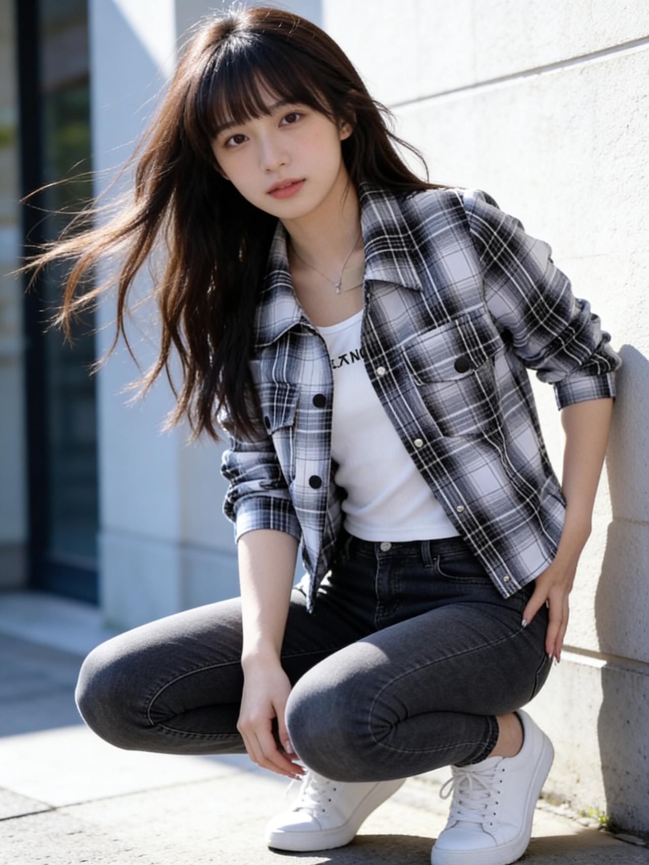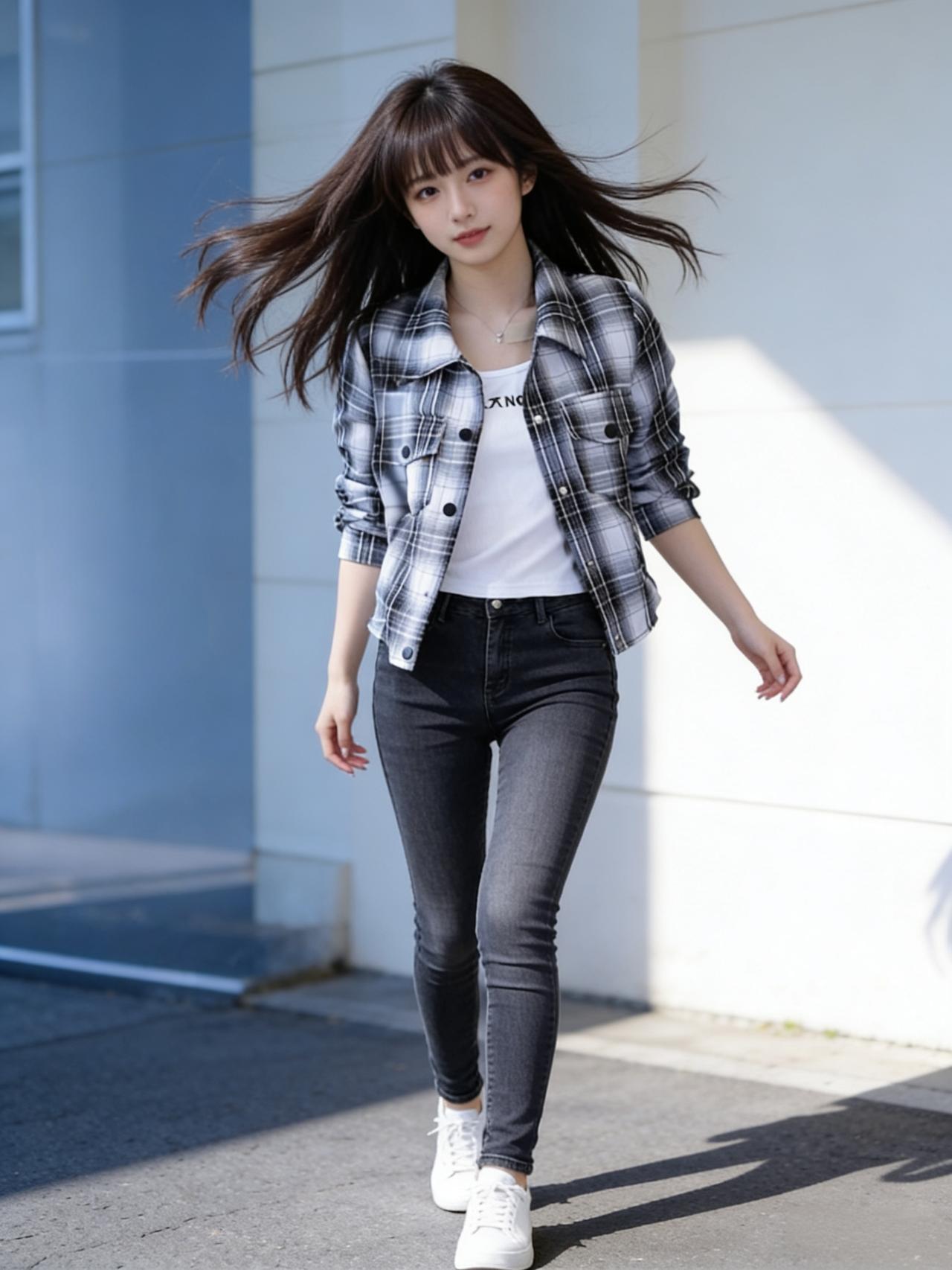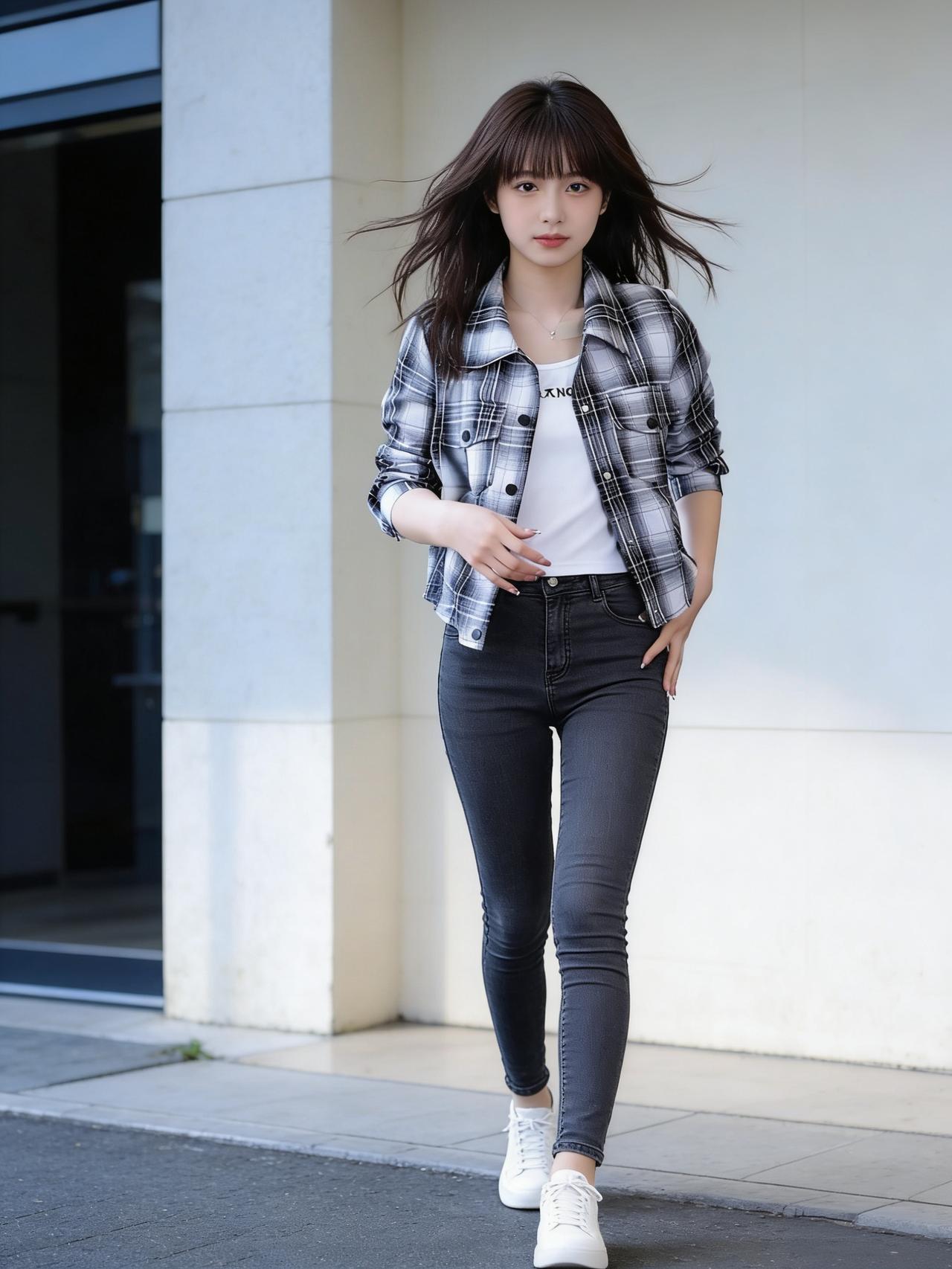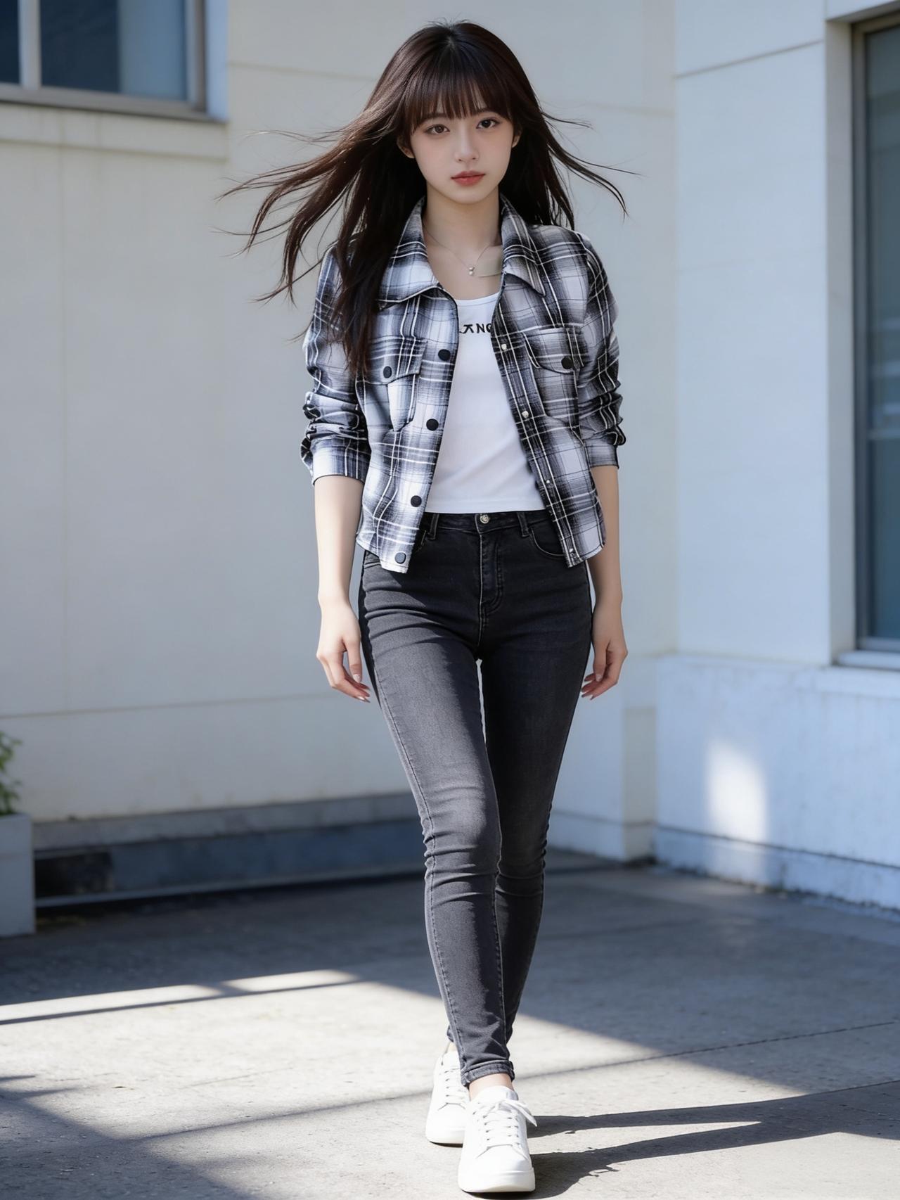 一个女孩在阳光下的墙边摆姿势。氛围感搭配穿搭分享 女生怎么穿搭会看着很温柔? 少