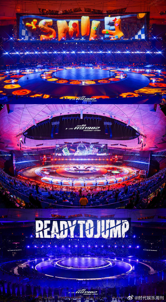 张杰鸟巢演唱会灯光万平 LED 屏与悬浮透明屏联动,灯光勾勒斗转星移轨迹,机械列