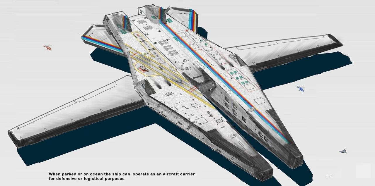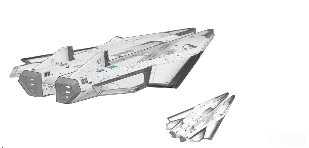 来几张科幻迷同时又是军迷喜欢的飞行器,未来宇宙星球运输登陆器,机翼可以后折,以降