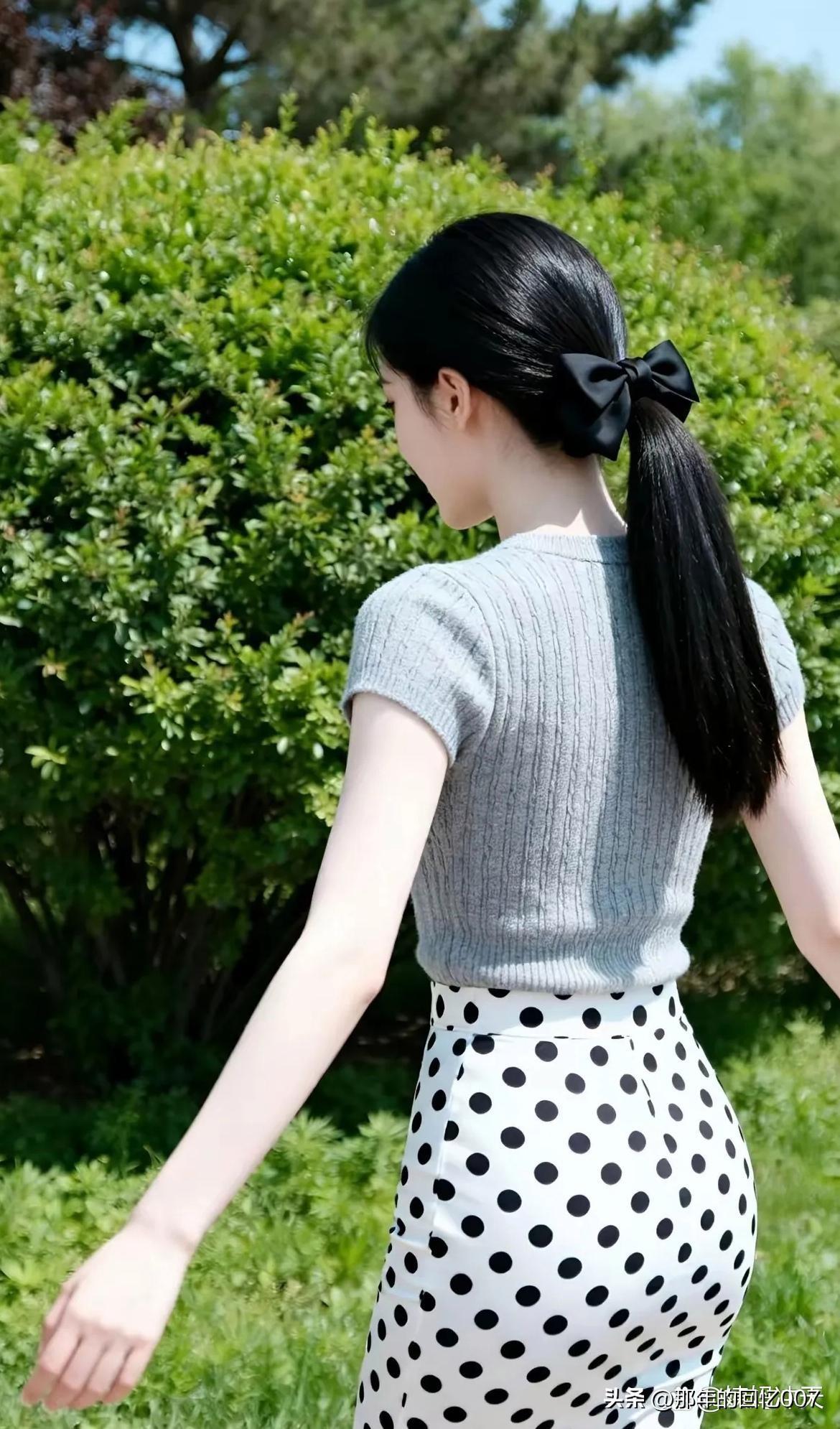 优雅波点裙,搭配简约灰色毛衣,尽显都市女性魅力!