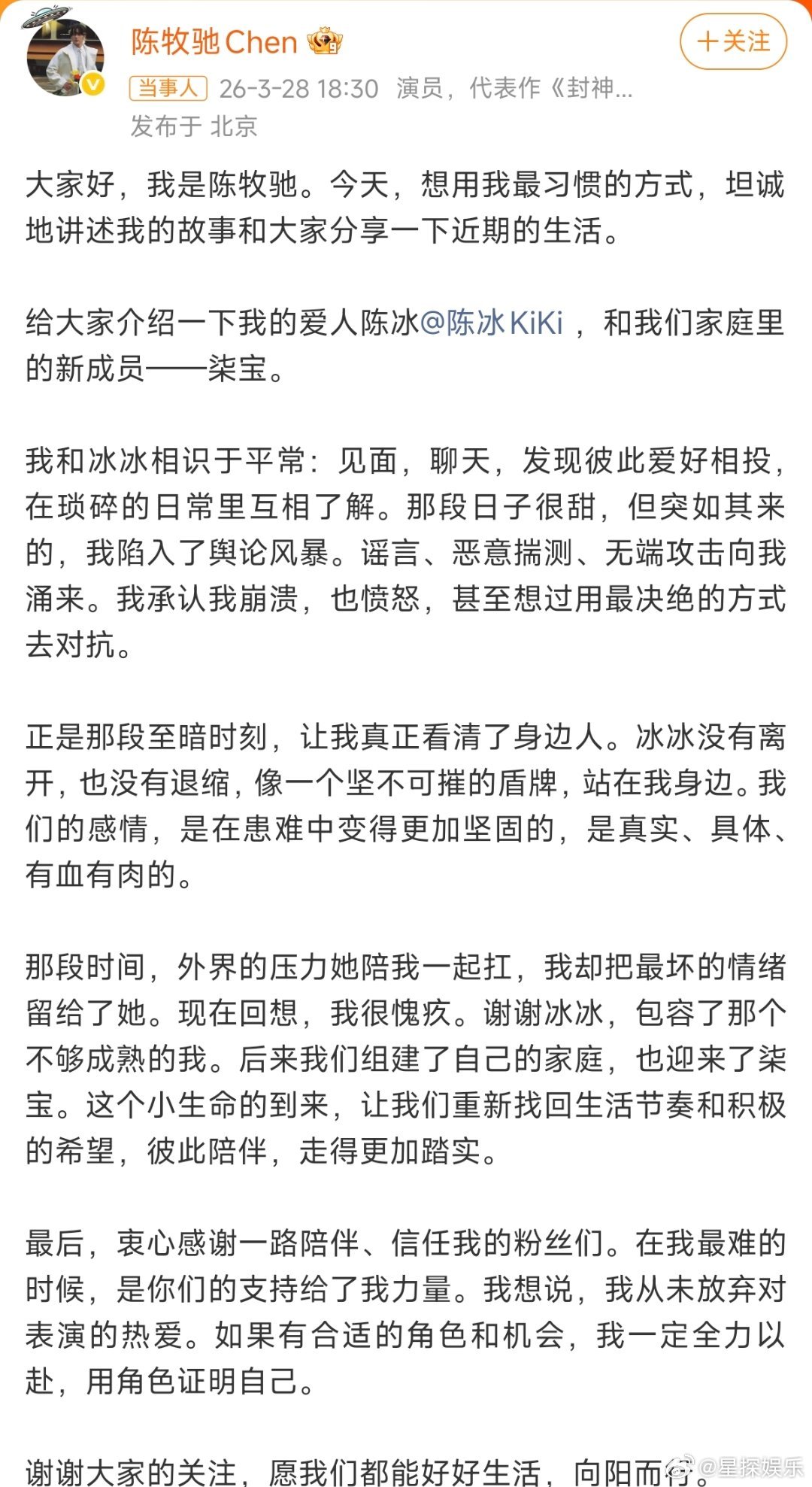 陈牧驰陈冰结婚生子在至暗时刻里站成盾牌的人,才是能一起走一辈子的光。陈牧驰和陈冰的故事里,最打动人的从来不是官宣本身,而是那句“我把最坏的情绪留给她,她却陪我扛住所有外界压力”。原来最好的爱情,是在泥泞里互相搀扶,在低谷里彼此照亮。愿每个认真生活的人,都能遇见那个为你挡风雨的人,也能拥有重新向阳而生的勇气。