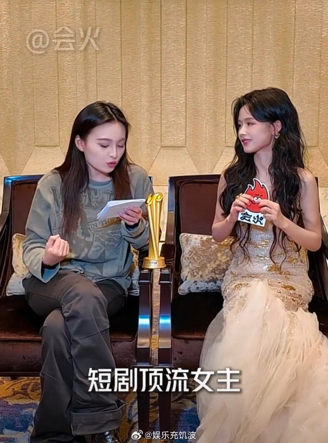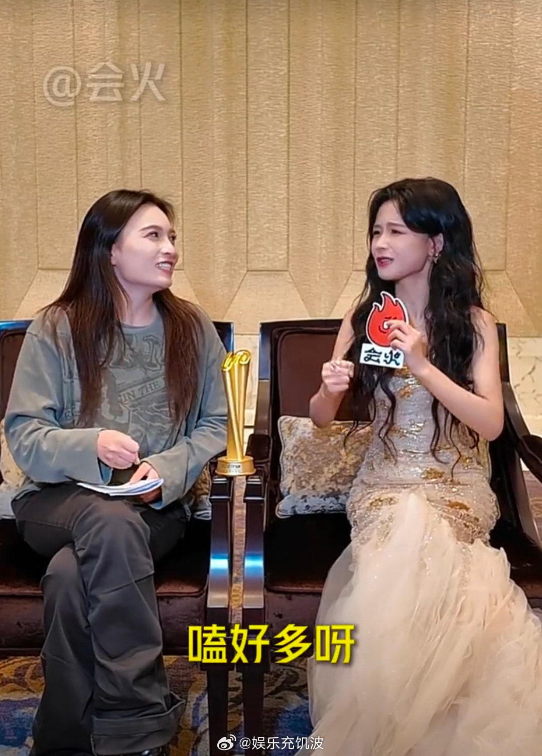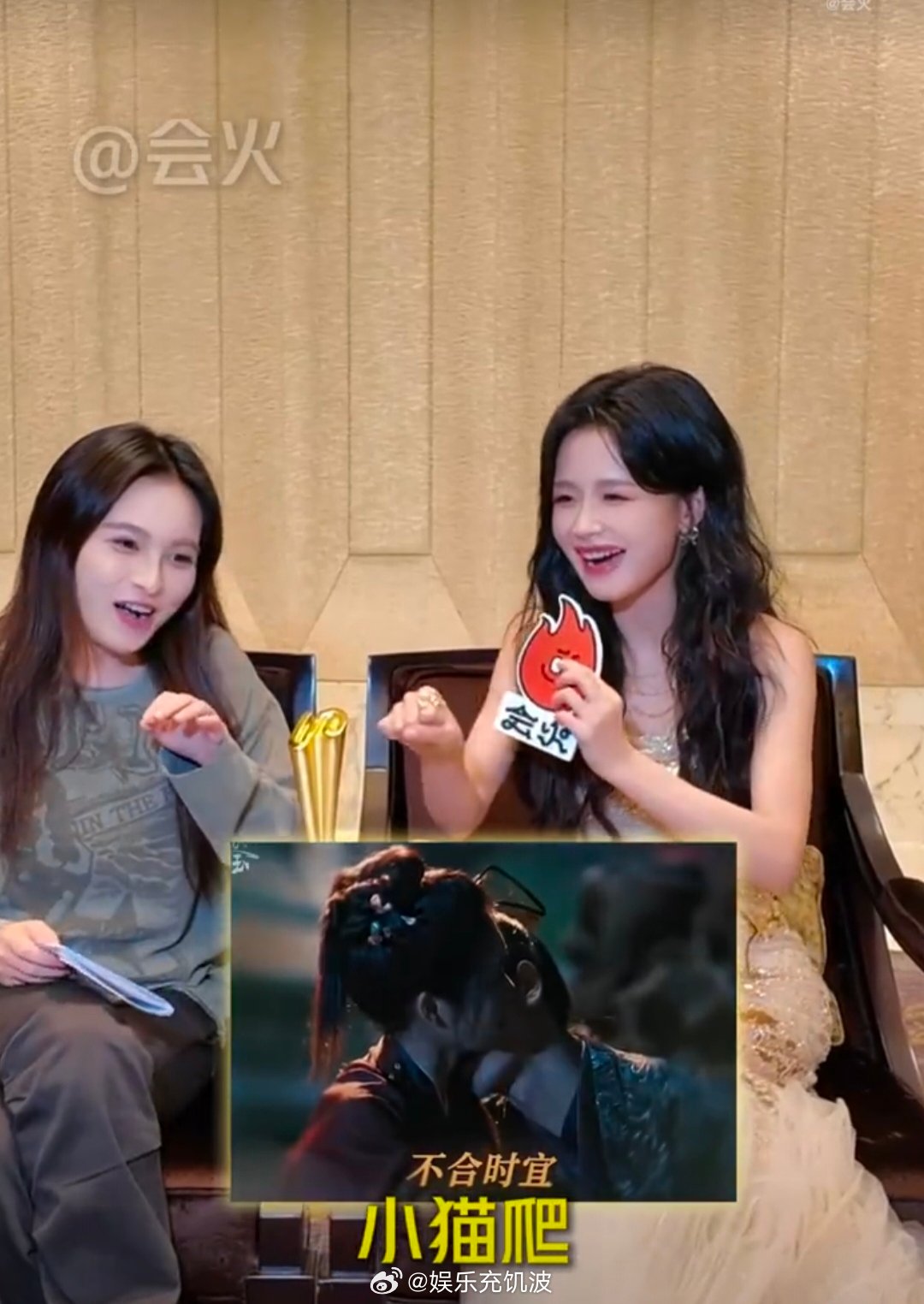 余茵也在嗑逐玉 会火×余茵后台同框!没想到美女也在追《逐玉》,果然好剧人人都爱嗑~