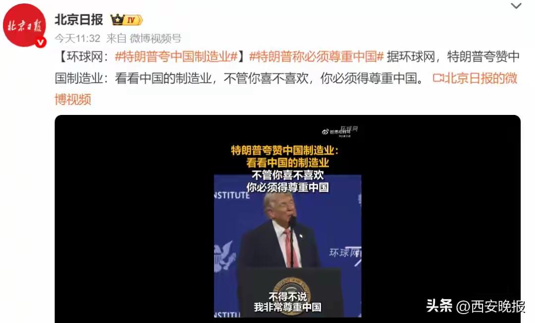 炸锅!特朗普当众认怂:必须尊重中国!这句话打了多少人的脸 国际政坛名场面出现!美国总统特朗普在迈阿密峰会上,当着全球记者的面狠狠夸中国:“我非常尊重中国,看看中国制造业多么发达,不管你喜不喜欢,但你必须尊重中国”! 这话一出直接引爆全网——那个曾对中国搞关税、打贸易战的特朗普,居然也低头认怂了?但仔细品,这哪里是认怂,分明是中国实力硬到让他不得不服! 中国制造业早已不是“低端代工”的老印象:连续16年全球第一,增加值占全球近30%,联合国全门类工业体系独一份 ;新能源汽车、船舶订单、光伏装备更是霸榜全球,就连特朗普都忍不住吐槽“中国造的车太多了”! 更关键的是,这份尊重不是施舍,是我们几十年深耕拼出来的。从“跟跑”到“领跑”,从规模到质量,中国制造业用硬核实力改写全球格局,连对手都不得不承认:这是实力碾压,不是运气! 锐利看法:特朗普的尊重,是对中国硬实力的最高认可。制造业是国家根基,中国能靠全产业链、创新力站稳脚跟,靠的从来不是讨好,而是实干。尊重不是靠嘴说,是靠实力赢来的,这才是最硬的底气! 你觉得中国制造业下一步该怎么突破?这份尊重背后,是实力还是妥协?评论区聊透!美国 欧洲对特朗普 特朗普争议发言 特朗普争议事件