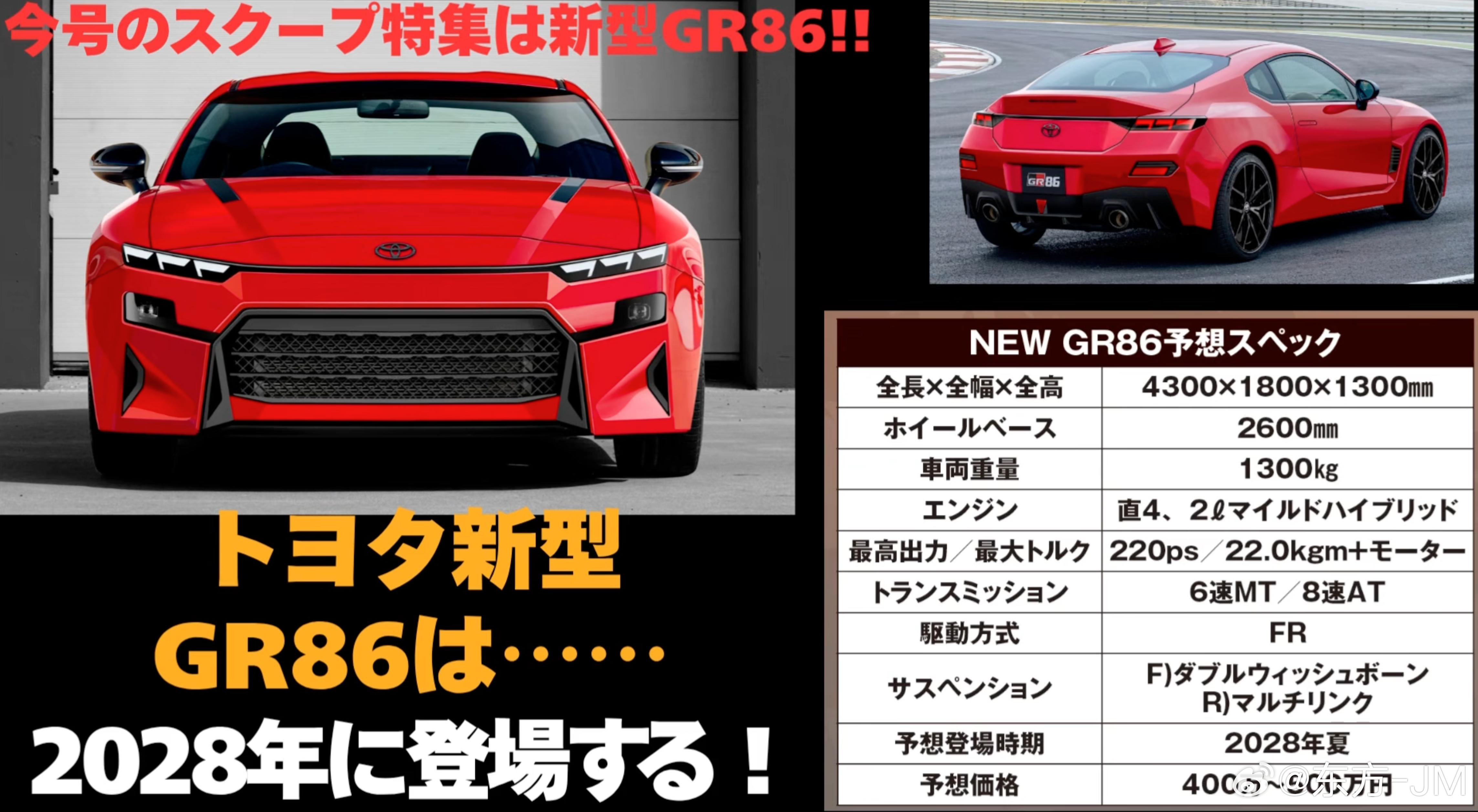 最新一期Bestcar杂志爆料,下一代丰田GR86预计将在2028年问世,动力系统采用2.0自吸+48V轻混。新一代86将延续现款定位,提供6MT和8AT两种变速箱。