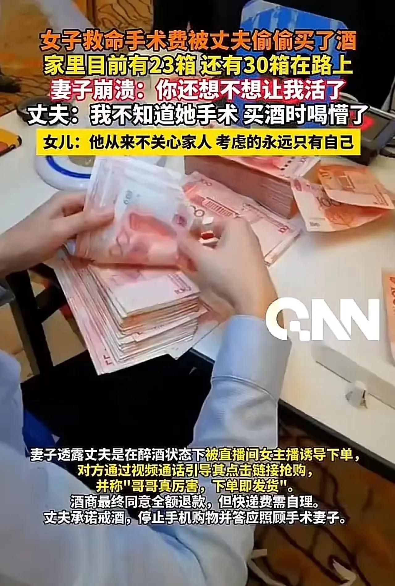 “都怨妻子以前给我买酒喝!”丈夫偷用3万救命钱买53箱酒,妻子崩溃大哭:你是想让我死吗? “都怨妻子以前给我买酒喝,没人告诉我那是手术费!” 这句话,出自一个拿着妻子救命钱、一次性买了53箱白酒的丈夫之口。 阿丽怎么也没想到,自己省吃俭用攒下的3万多块手术费,还没等到周四去医院,就被丈夫在直播间里换成了满屋子的酒。 23箱已经堆在家里,30箱还在路上。而她的胃里,还长着一个等着手术切除的肿瘤。 一、救命钱变酒水,妻子当场崩溃 阿丽的病不是一天两天了。胃里长了肿瘤,医生早就叮嘱过:必须尽快手术,拖不得。 为了凑齐这笔手术费,阿丽省了又省,好不容易攒下3万多块钱。跟医院约好了周四去郑大一附院手术,日子都定死了。 可当她回家取钱的时候,看到的不是存折,不是现金,而是堆得满满当当的酒箱子。 一个箱子、两个箱子……整整23箱已经送到家,还有30箱在发货路上。 53箱白酒,把阿丽的救命钱花得干干净净。 阿丽急得眼泪都掉下来了,赶紧让丈夫联系卖家退货。可卖家就跟人间蒸发了一样,电话不接、消息不回。 走投无路之下,阿丽只能找到调解员求助,哭着说:“我跟医生约好了周四手术,现在钱没了,卖家也联系不上,我该怎么办啊?” 二、“都怨她以前给我买酒喝” 面对调解员的询问,丈夫的回答让人瞠目结舌。 他说自己当时喝了酒,在直播间迷迷糊糊下的单。“我平常上午喝半斤,下午喝半斤,那天喝多了,意识不清醒。” 至于为什么能一口气买53箱,他解释说是直播间的主播一口一个“哥哥真厉害”,他就跟着了魔一样,点着点着就买了这么多。 最让人心寒的是,当被问到为什么不跟妻子商量时,他竟然说:“她做手术也没跟我说啊,我不知道这是她的救命钱。” 然后话锋一转,开始埋怨起妻子来:“当初也是怨她,我收废品辛苦,她主动买酒让我解乏,我才慢慢喝上瘾的。” 言下之意,妻子今天的困境,是她自己一手造成的。 阿丽听完这话,眼泪止不住地流。她当初买酒是心疼丈夫辛苦,谁能想到,这份心疼换来的,是自己的救命钱被一瓶一瓶喝掉、一箱一箱买空。 三、法律怎么看这件事 这件事表面上看是家庭矛盾,但背后涉及的法律问题其实非常清楚。 第一,这3万多块钱属于夫妻共同财产,但丈夫无权擅自用于非家庭必要开支。 根据《民法典》第一千零六十二条,夫妻在婚姻关系存续期间所得的财产,归夫妻共同所有,双方有平等的处理权。但这里说的“平等处理权”,指的是日常家事代理权。 什么叫日常家事?买菜、交水电费、给孩子交学费,这些属于日常家事。一次性买53箱白酒,显然超出了“日常家事”的范畴。对于这种大额非必要开支,夫妻双方应当协商一致。丈夫在妻子不知情的情况下擅自花掉这笔钱,属于无权处分。 第二,这笔钱是妻子的手术费,属于用于履行法定义务的财产。 妻子身患肿瘤,急需手术,这笔钱是维持生命健康所必需的。丈夫将这笔钱挥霍掉,如果导致妻子无法及时手术、病情恶化,甚至可能涉及遗弃问题。 根据《刑法》第二百六十一条,对于年老、年幼、患病或者其他没有独立生活能力的人,负有扶养义务而拒绝扶养,情节恶劣的,构成遗弃罪。虽然这件事还没有发展到刑事立案的程度,但丈夫的行为性质已经触碰到了法律的红线。 第三,直播间卖酒的行为是否构成对消费者的欺诈或诱导,需要具体分析。 丈夫声称自己是醉酒状态下被诱导下单,但“醉酒”本身不能成为免除法律责任的理由。成年人应当对自己醉酒状态下的行为负责,这是民法上的基本原则。 至于直播间是否存在虚假宣传、诱导消费等违规行为,那是另一回事。如果主播确实存在违法违规的营销手段,市场监管部门可以进行查处。但把责任完全推给主播,显然是站不住脚的。 四、网友的愤怒:这不是糊涂,是自私 这件事在网上传开后,网友们的评论几乎一边倒。 有人说:“超市进货都不会一次进53箱,一个正常人怎么会买这么多酒?还怨妻子没跟他讲,这不是糊涂,这是不想让老婆活。” 还有人说:“挣不到钱就算了,一天到晚就知道喝酒,老婆的命在他眼里还不如直播间里一句‘哥哥’。” 更多的人感到绝望:“跟这样的男人生活有什么意思?钱没了可以再挣,但枕边人的冷漠,才是真正要命的东西。 今日话题: 如果你是阿丽,钱退回来了,丈夫也承诺戒酒了,你会选择原谅他吗?欢迎在评论区说说你的看法。 来源:河南广播电视台民生频道《小莉帮忙》