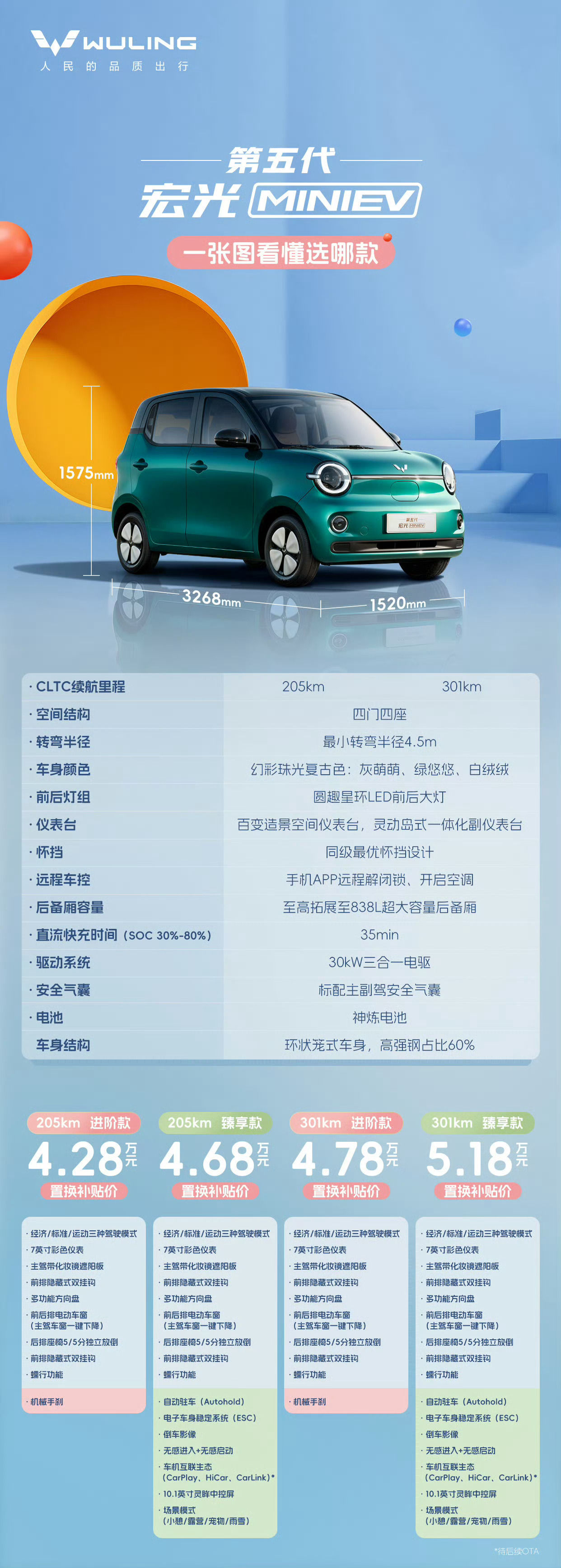 五菱宏光MINIEV越来越有吸引力啊,第五代这个设计很精致,古典美,尤其这个绿色,是不是有点英伦范儿?四门四座也很实用,内饰是不是低配版那个没大屏幕的更有设计感?4.28万起,这小车城市代步太OK了!