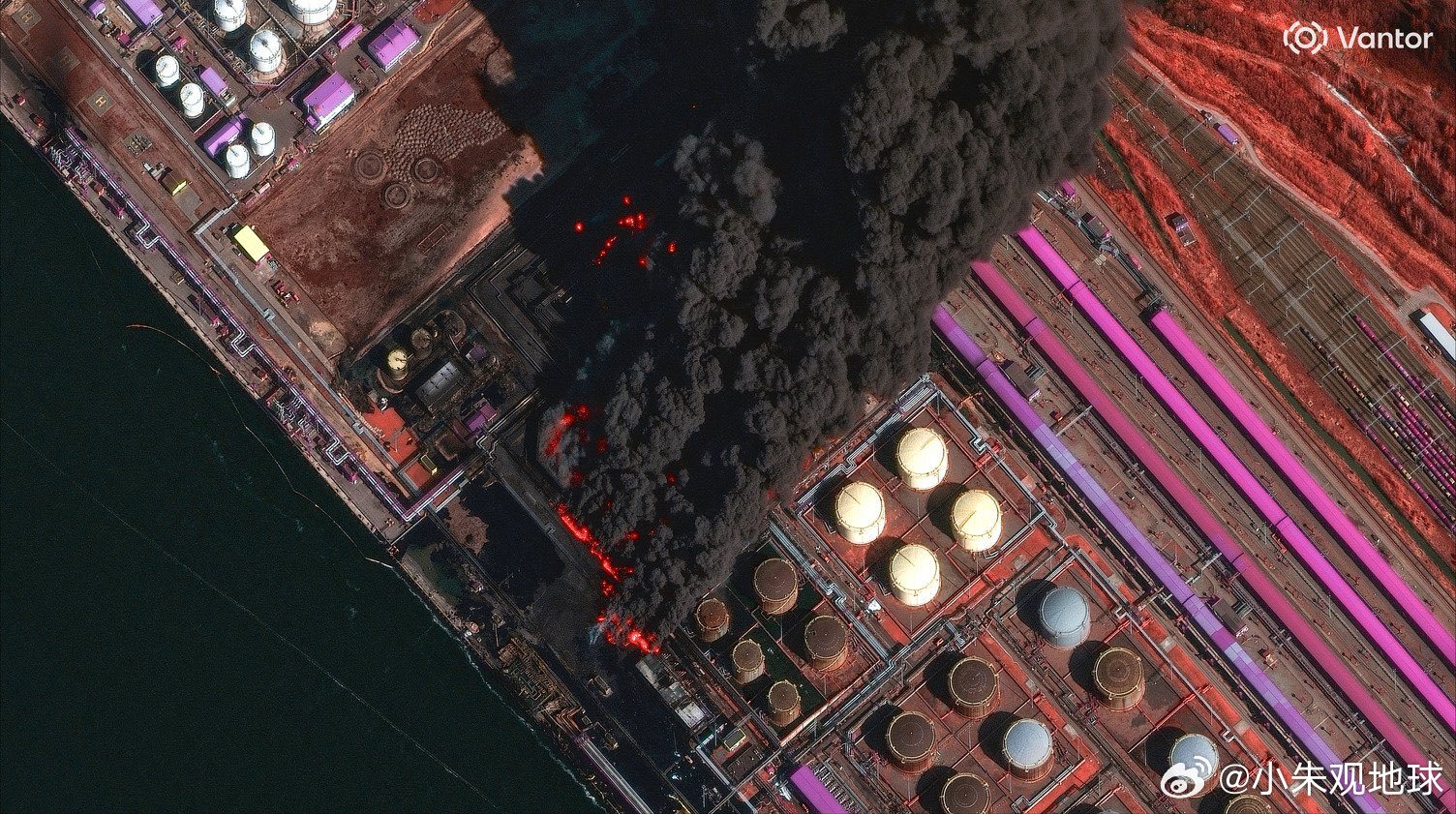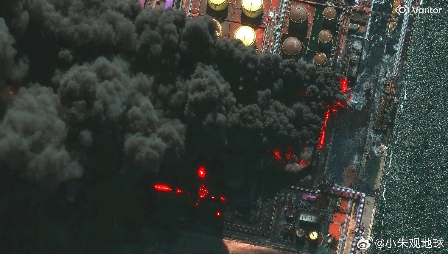 乌克兰无人机袭击俄罗斯列宁格勒地区的乌斯季-卢加石油码头后,冒出滚滚浓烟 俄乌局势