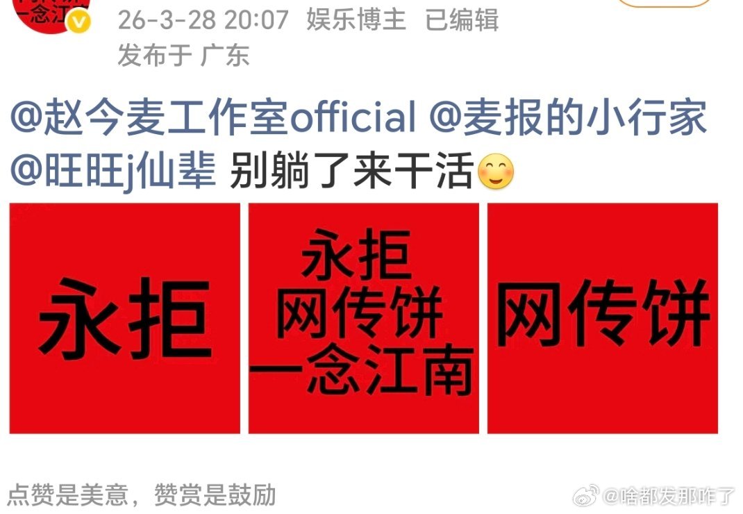 赵今麦粉丝在永拒网传饼《一念江南》,影视寒冬,粉丝就不能安静一些~