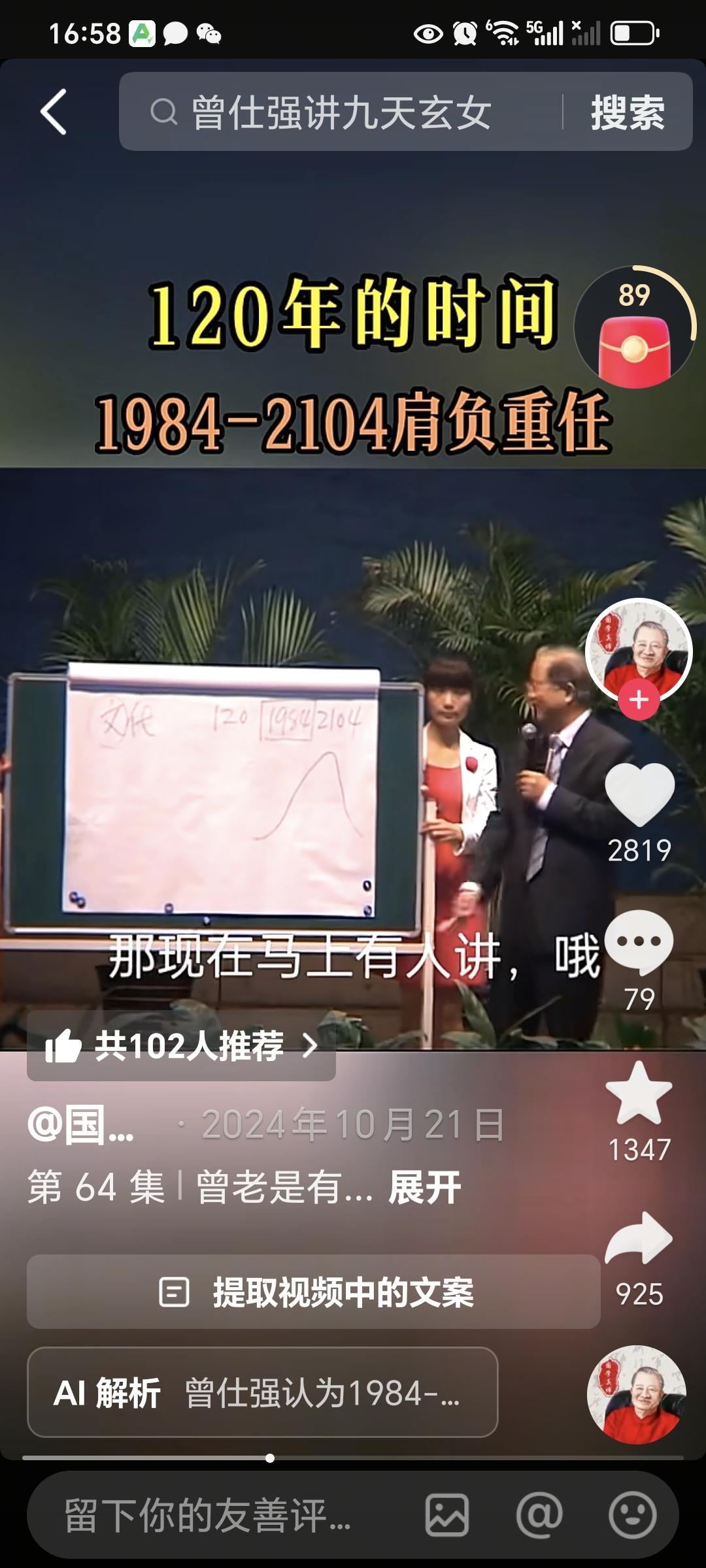 国学大I师曾仕强讲过国运,张雪峰居然有两点与之巧合。 曾老早年在节目中讲过,英国和美国各有一百年国运。十九世纪,英国因工业化领 先,成为日不落帝国。二十世纪,美国因商业化而兴盛,统领全球百年。中国将有120年的国运,却是因文化而成就。曾老说这运势从1984年开始,将在2104年到达顶I峰。 张雪峰出生于1984年,而他正是从事与文化教育相关的工作。 西方的大科学家与东方的古代先贤们,都曾有相同的观点:科学的尽头是玄学。 如果这世界有轮回,希望张老师下辈子不要再做急脾气的东北人,一生匆忙太短暂。既然从苏州离开,希望张老师下一世就做个性格温和的江南人吧,凡事慢慢来,活过八十岁,正好可以见证中华文化的繁盛。 我们等你回来。 记录我的2026