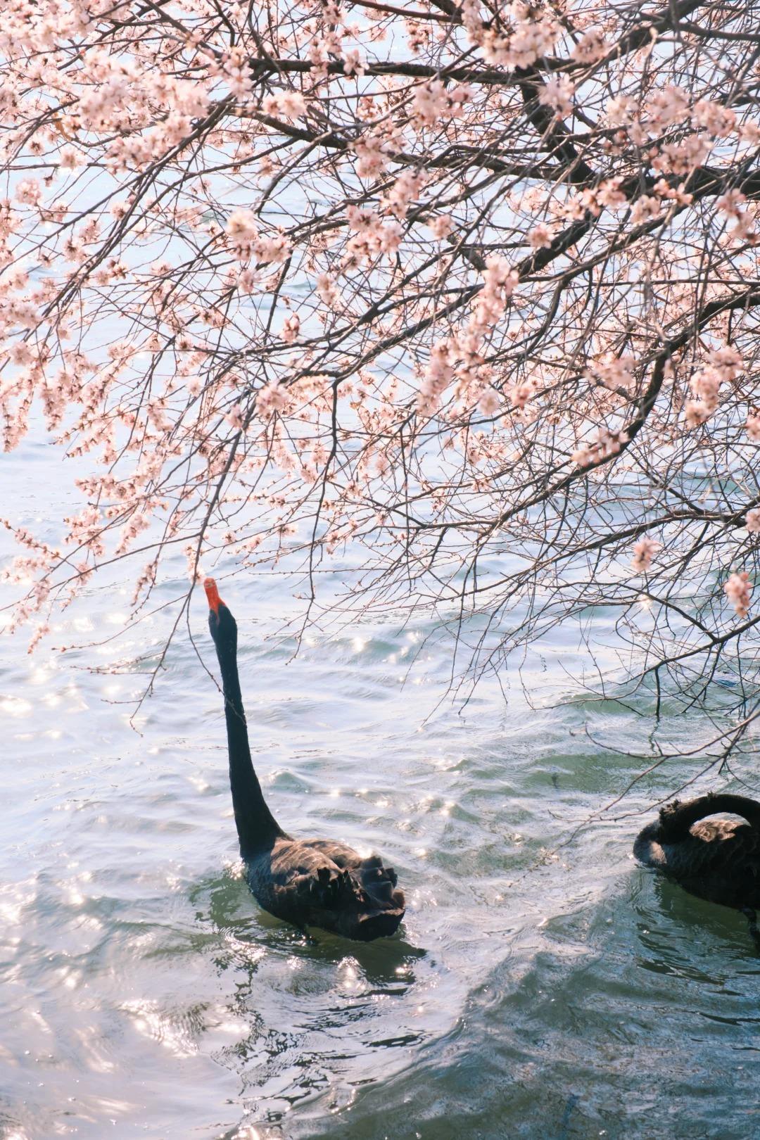 今日份幸运直接拉满,意外解锁了一个绝绝子机位,光线柔和又出片,衬得颐和园的亭台水榭都多了几分温柔。幸运不止于此,蹲守片刻就遇到了优雅的黑天鹅,小心翼翼靠近,成功同框合影,它的羽毛乌黑发亮,姿态慵懒又高贵,每一帧都治愈满分。更惊喜的是,还抓拍到了黑天鹅啄食桃花的瞬间,粉白的花瓣落在它的羽翼上,灵动又可爱,这趟颐和园之行,真是被温柔和幸运狠狠包围啦~