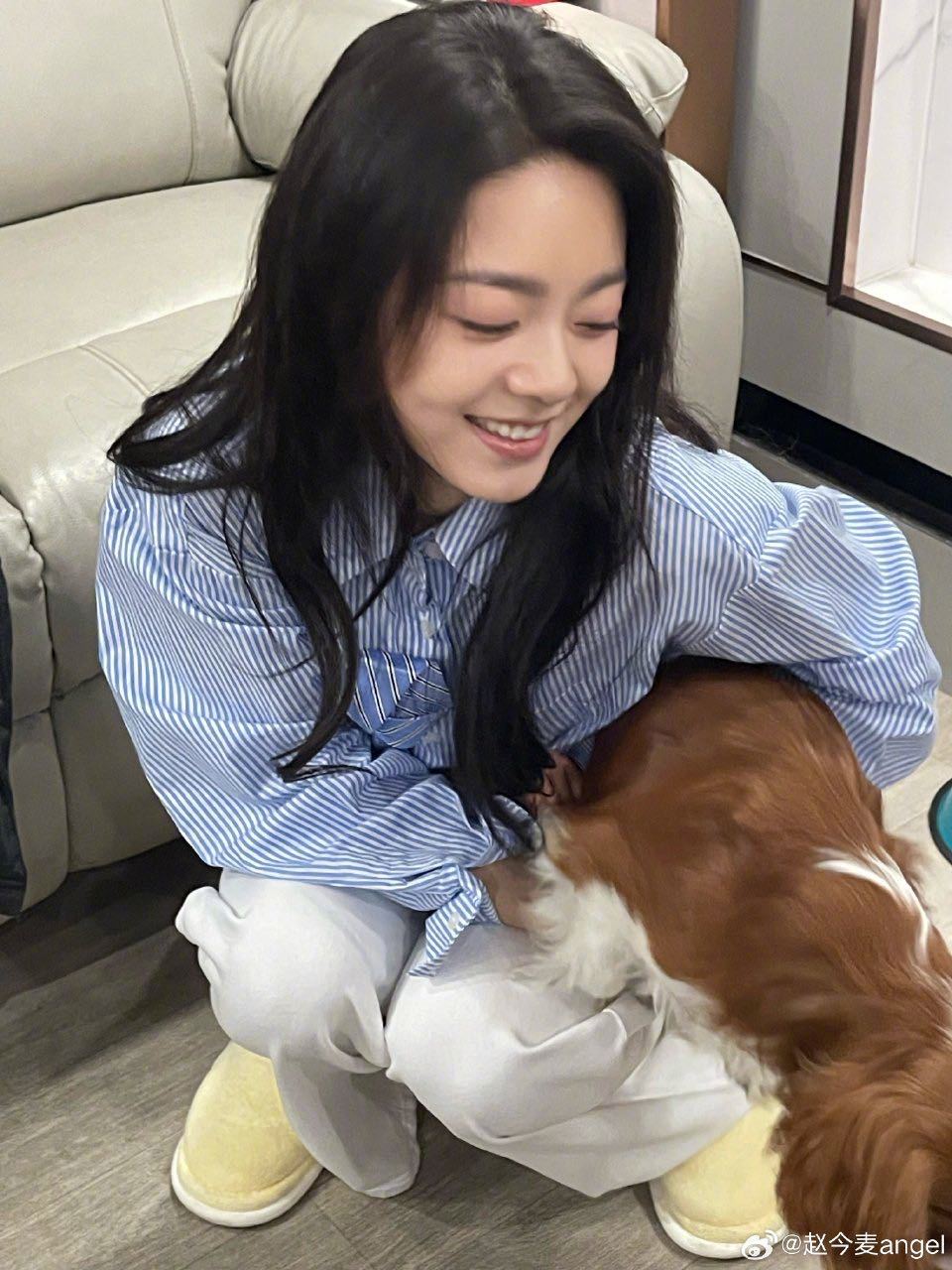 赵今麦抱拿铁合照 好治愈的一条日常!赵今麦晒和拿铁的合影,两个可爱鬼没错啦~