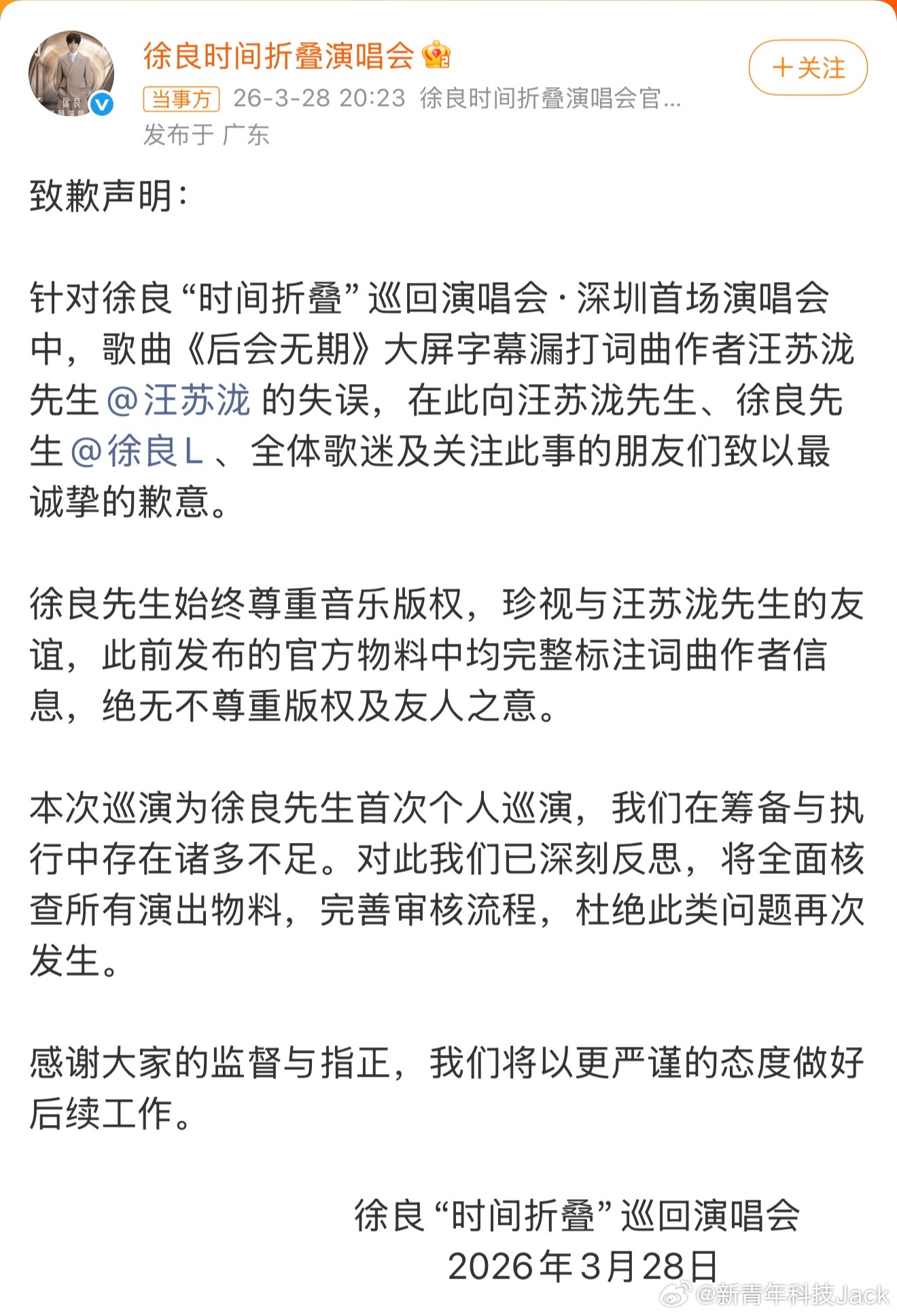 徐良方致歉声明说实话,这个声明我是信的态度也挺端正,还现场道歉了。因为他们俩之前就挺好,而且汪苏泷演唱会他也去了,还给了互动大屏,互送花篮啥的和之前另一位歌手纠纷完全不一样。