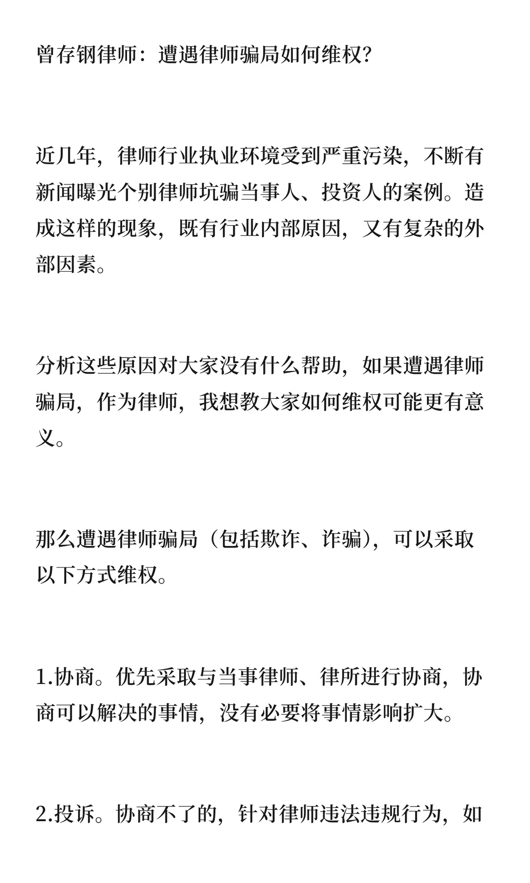 曾存钢律师:遭遇律师骗局如何维权?头条创作训练营