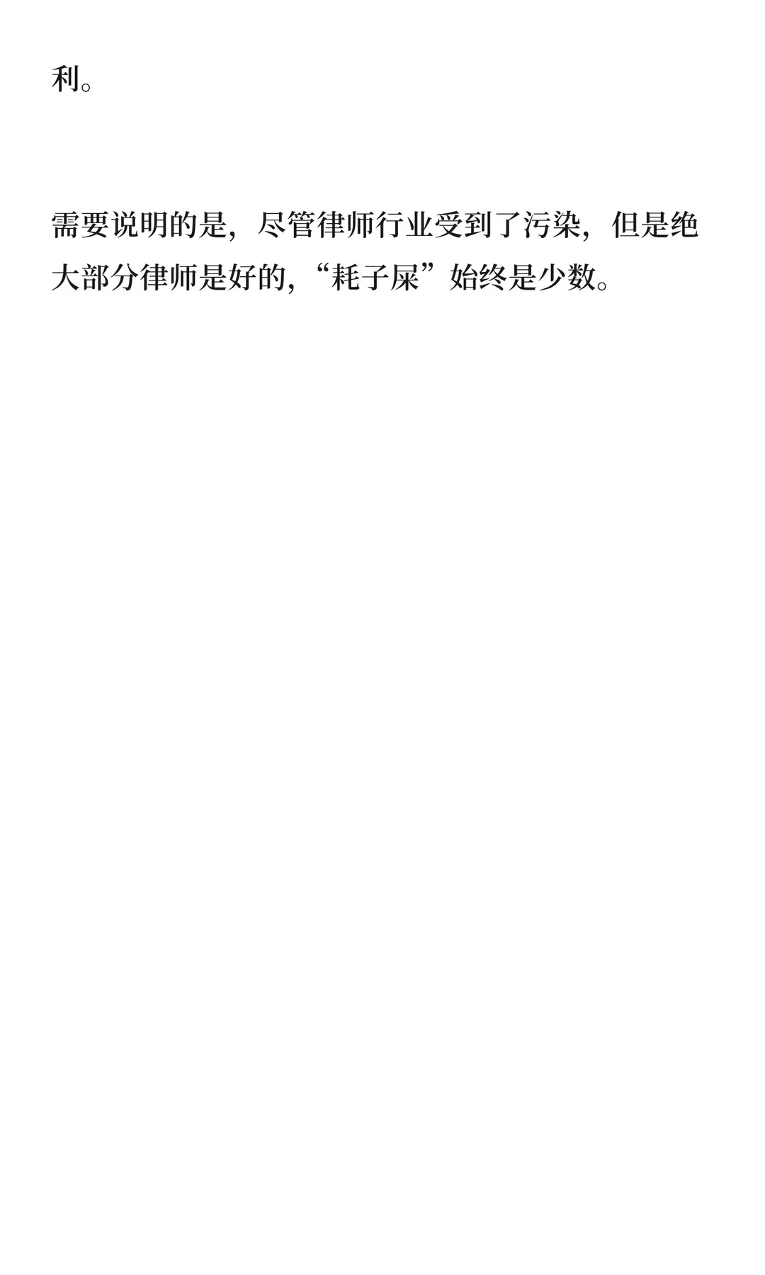 需要说明的是,尽管律师行业受到了污染,但是绝大部分律师是好的,“耗子屎”始终是少数。