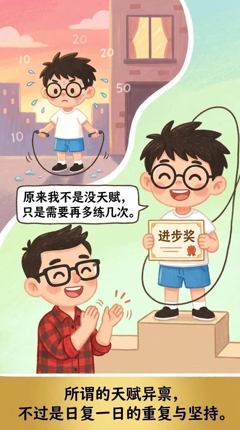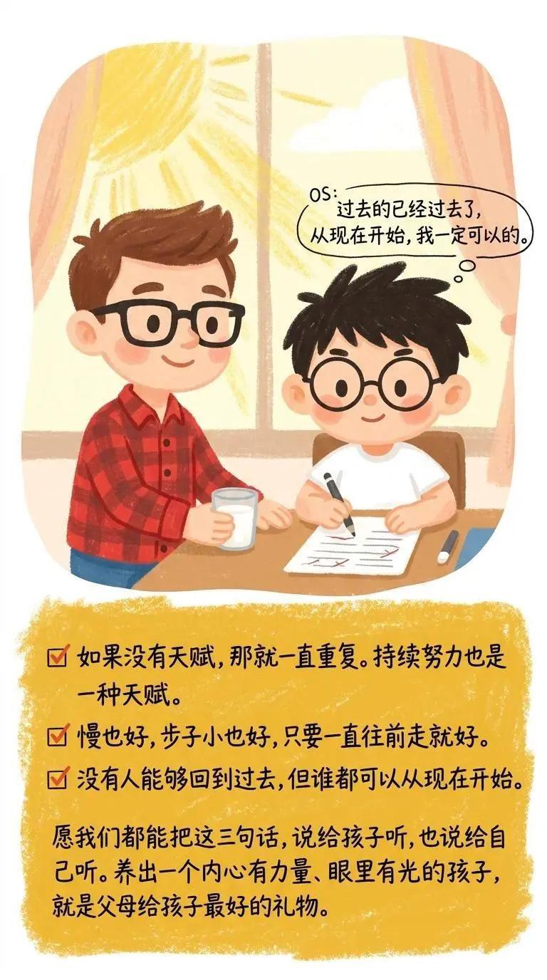 请告诉孩子这三句话,真的能逆天改命。 1、如果没有天赋,那就一直重复。持续努力也