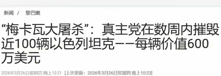 加沙人民的仇恨终于有人来给雪耻了!黎巴嫩真主党一周干掉100辆以色列坦克,被称为梅卡瓦大屠杀!以色列军事基地断壁残垣,已经成为坟场,死了多少以色列士兵还是迷! 最近这段时间,黎巴嫩真主党对以色列的打击就没停过,尤其是这一周,下手又快又狠,一口气干掉了100辆以色列的梅卡瓦坦克。 他们用的是伊朗产的“钻石”图像制导反坦克导弹,还有无人机,不管是正面攻击,还是从空中偷袭,都能精准命中坦克的弱点,把这些曾经不可一世的坦克炸得面目全非,有的坦克炮塔被炸飞,有的车身被拦腰炸断,现场惨不忍睹,所以大家才会把这场打击叫做“梅卡瓦大屠杀”——这不是夸张,是实实在在发生的事,真主党还发布了打击视频,大家都能看到。 除了坦克被大量摧毁,以色列的军事基地也遭了大殃,现在已经变成了断壁残垣,活脱脱一个坟场。 之前,伊朗就向以色列的内瓦蒂姆空军基地发射过弹道导弹,卫星图显示,基地里至少有33处弹坑,还有一个机库被直接摧毁,滑行道也被炸得坑坑洼洼,虽然以色列后来修了一部分,但受损的痕迹还是清清楚楚。 而最近,黎巴嫩真主党更是直接用无人机袭击以色列的军事基地,比如之前就袭击过以色列北部宾亚米纳的戈兰尼旅训练营地,造成多名以军士兵死亡、重伤。 现在的以色列军事基地,到处都是被炸坏的装备和建筑,墙壁上全是弹孔,地面上布满了弹坑,有的地方还在冒着黑烟,根本看不到一点往日的样子。 驻守在基地里的以军士兵,整天提心吊胆,生怕下一秒就遭到袭击,以前那种嚣张跋扈的劲头,早就没了踪影。 至于到底死了多少以色列士兵,现在还是个迷。以色列国防军虽然偶尔会公布一些伤亡消息,比如3月26日就说有一名士兵被真主党的反坦克导弹打死,还有4人受伤;3月27日和28日,又有多名士兵在袭击中受伤,有重伤也有中度受伤。 但这些只是冰山一角,他们从来没有公开过完整的伤亡数据,尤其是在真主党这一周的猛烈打击下,到底死了多少人,外界只能猜测,没人能知道准确数字。 有人可能会问,真主党为什么要帮加沙人民?其实很简单,以色列的嚣张跋扈,不仅欺负加沙人民,也威胁到了黎巴嫩的安全。 自从美国和以色列2月底对伊朗发动大规模军事行动后,伊朗反击,作为伊朗的盟友,真主党从3月初就开始向以色列发射火箭弹、发动袭击,就是要打击以色列的嚣张气焰,替加沙人民出口气,帮他们洗刷被欺负的耻辱。 以前,以色列总觉得自己武器先进,没人能奈何得了它,对加沙人民犯下了滔天罪行,以为加沙人民只能忍气吞声,永远翻不了身。 可他们没想到,黎巴嫩真主党会出手这么狠,不仅干掉了他们大量的精锐坦克,还把他们的军事基地炸成了坟场,让他们尝到了被打击的滋味。 对于加沙人民来说,这就是最解气的事,就是雪耻!这么久以来,他们看着自己的亲人被杀害、家园被摧毁,那种痛苦和仇恨,没人能体会。 现在,真主党替他们出了这口恶气,把嚣张的以色列打得节节败退,让以色列也知道,欺负人是要付出代价的。 可能有人会说,这样的打击能不能彻底结束加沙的苦难,还不好说。但不管怎么说,这都是一个好开始,至少让以色列知道,它不是无敌的,至少让加沙人民看到了希望,知道有人在帮他们,有人在替他们讨回公道。 以前,以色列仗着有美国撑腰,在中东地区为所欲为,想打谁就打谁,根本不把其他国家和人民放在眼里。可现在,黎巴嫩真主党的打击,让他们明白,再先进的武器,也挡不住正义的反击;再嚣张的气焰,也会被狠狠打压。 加沙人民的仇恨,终于有人来替他们雪耻了,这不是空话,是实实在在发生的事——100辆梅卡瓦坦克被摧毁,军事基地变成坟场,以军士兵伤亡惨重且人数成谜,这些都是最好的证明。 希望这样的打击能继续下去,希望以色列能彻底停止对加沙人民的迫害,希望加沙人民能早日回到自己的家园,不再受战争的折磨。 毕竟,加沙人民已经承受了太多苦难,他们值得拥有和平,值得被公平对待,而那些犯下罪行的人,也终究要为自己的所作所为付出应有的代价。 说到底,这就是正义的反击,是加沙人民的雪耻时刻。以前被欺负的日子,终于要慢慢过去了,那些深埋在加沙人民心里的仇恨,终于有了洗刷的希望,这对所有加沙人来说,都是最值得欣慰的事。