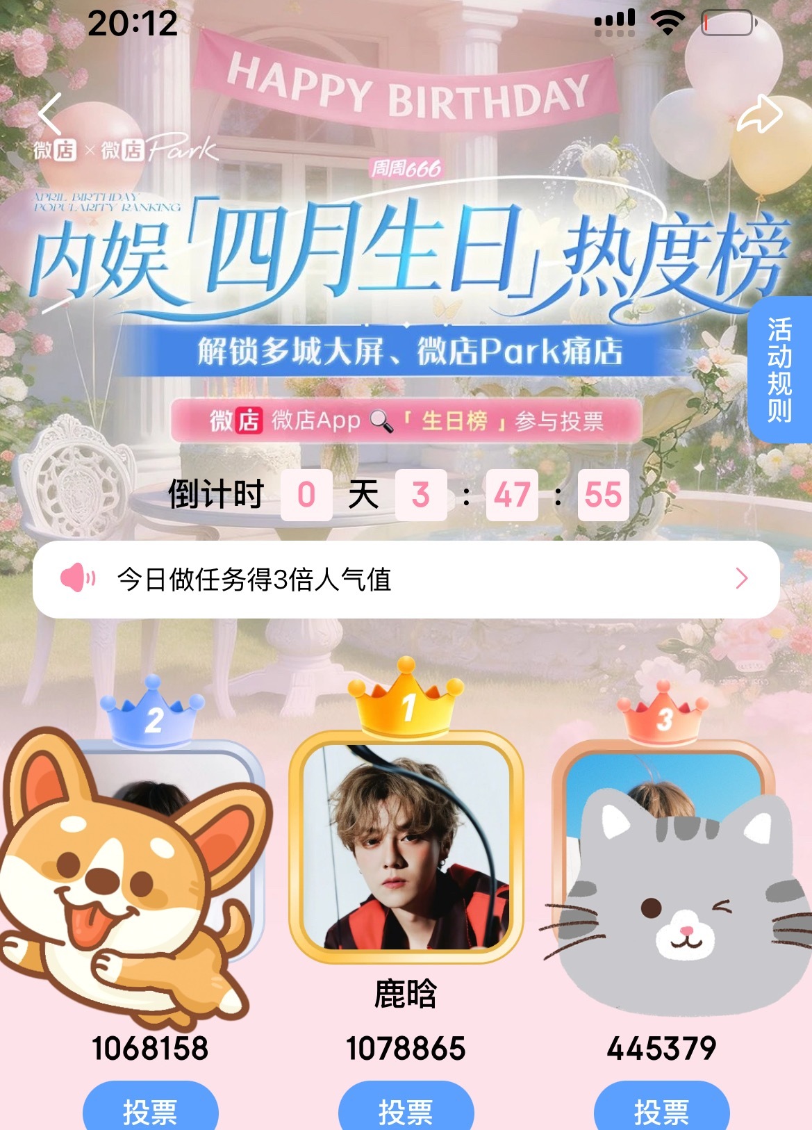 以防大家不知道:wd活动是今晚11点59结束‼️wd活动是今晚11点59结束‼️wd活动是今晚11点59结束‼️关注我的小芦大家都去口口传一下吧晚上每次都睡的早被偷塔做了这么久只要第一名哈☝️鹿晗