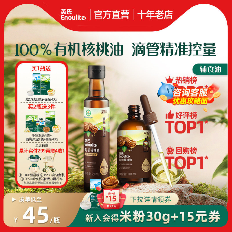 英氏有机核桃油DHA婴幼儿辅食油宝宝食用