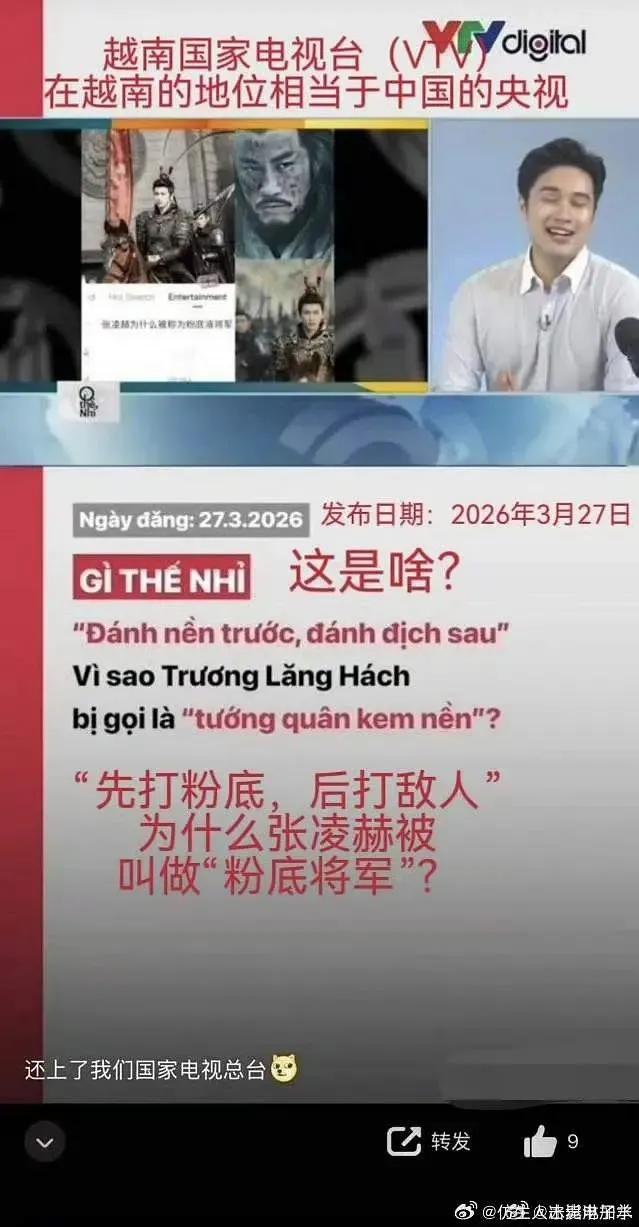 钧正平为啥批评粉底将军的真相来了! 越南官方账号发文嘲讽,地方节目台播放嘲讽新闻,甚至招兵海报配了粉底将军图,谁料,剧方竟买热搜说自己为国争光,还觉得越南人是在夸它? 实际上,越南人征兵海报是带有侮辱性质的,他们国家还把粉底液将军放在电视播出嘲讽。 众⭐️不以为耻反以为荣,直接买了高位热搜宣传,这等于把脸送上去给它们踩。 而且这部剧数据还营销成了建国史瀑,不知道的外国人还以为中国人就爱看这样的将军呢…… 本来张凌赫上次歧视东南亚的舆论发酵了,虽然他立马滑轨道歉,但是只是在最新推文评论区,所以东南亚的人都很讨厌他,关注量也变得很大。 这次的事情也是他们团队玩脱了,想借粉底液将军营销黑红正炒反炒,甚至营销了泰国征兵。 相当于一个老鼠打了一个洞,一群老鼠嫌这个洞还不够大,就集体挖,越挖越大,最后被敌人发现了。 这也是内娱有史以来第一次播剧,损害了国家形象,也真是前无古人,后无来者了。 所以说这次军方大点名真的是事有所因。 阅兵才过去多久呀?军人的形象就这么被破坏了。怪不得上面这么生气,完全是在抹黑中国军人的形象。 中国军人和军事实力靠自己的实力在外网这么多年好不容易舆论战才好一点,他们本来就酸咱们的月饼,突然出来这个点,可是让他们使劲抹黑了。