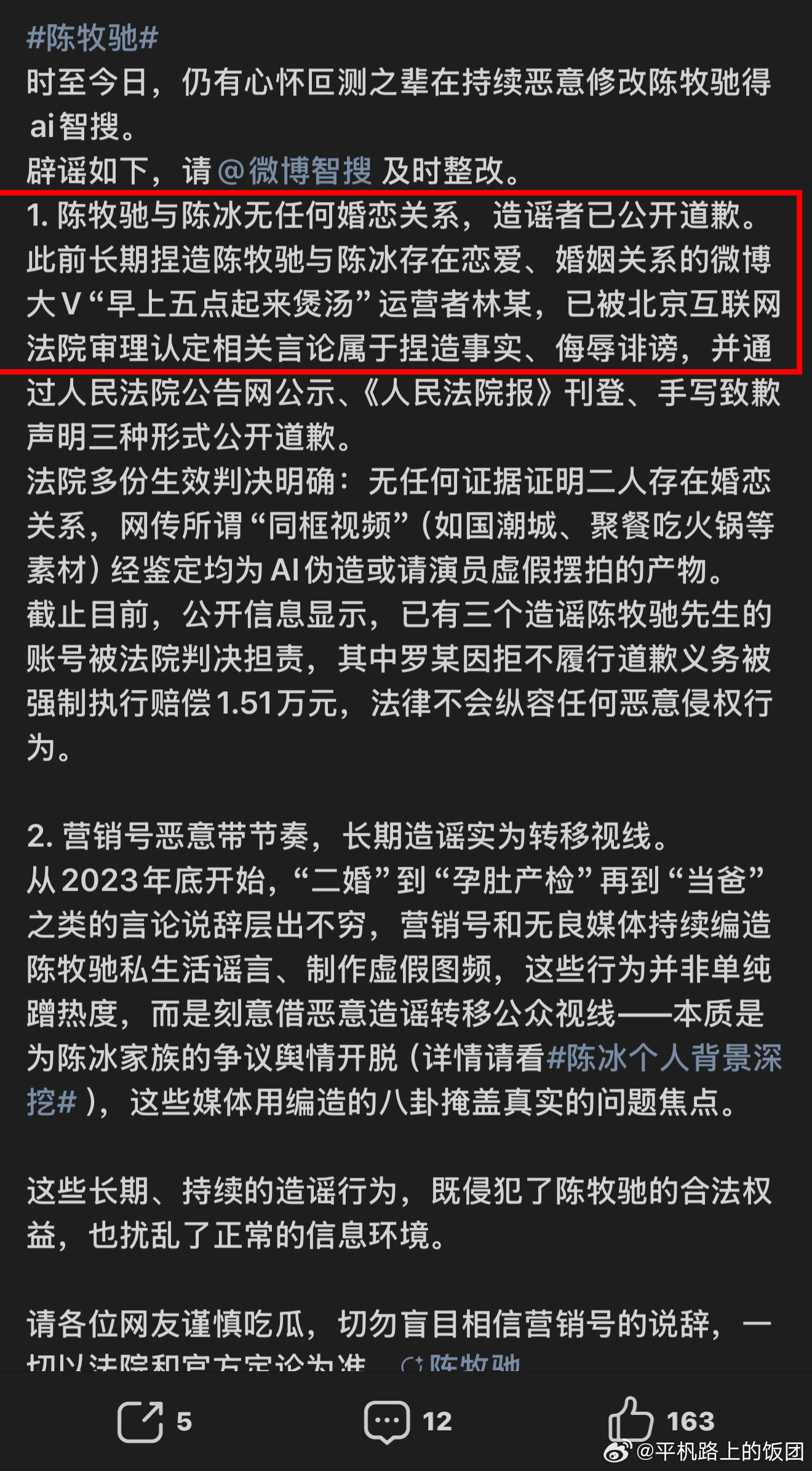 陈牧驰大粉23号发的微博一而再,再而三的强调陈牧驰和陈冰没有任何关系,陈牧驰今天