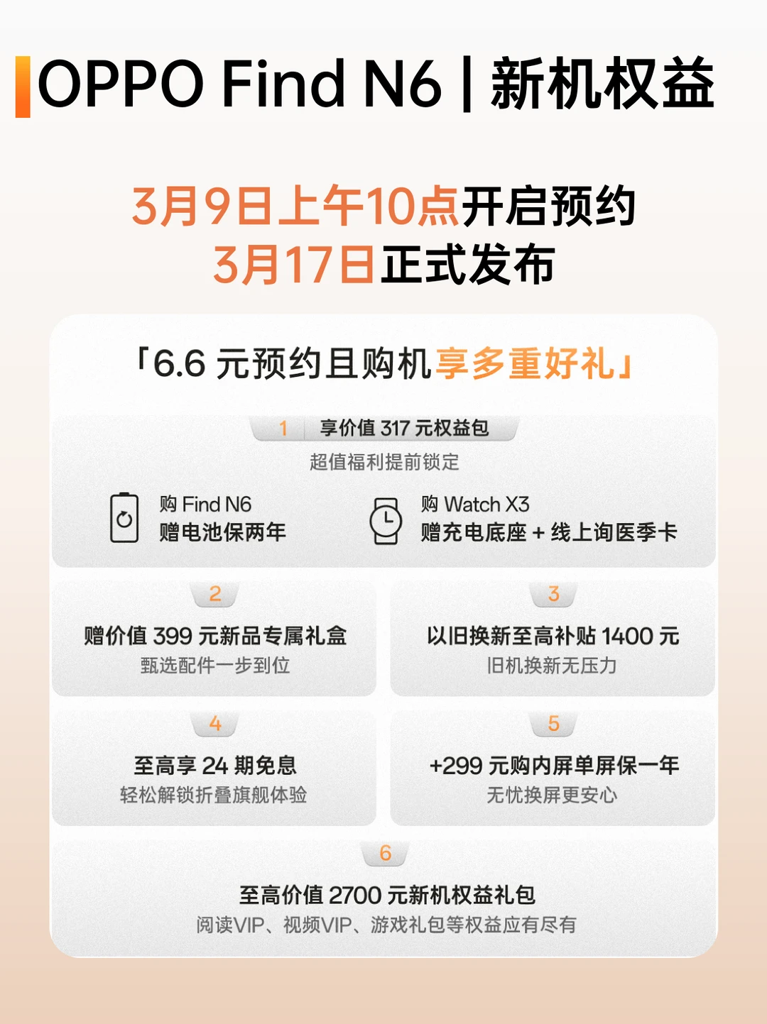 只要花6块6就能抢先预约,且购机享至多6000元多重好礼!这6块6花得非常值得!想等新机的宝子可以预约一波~