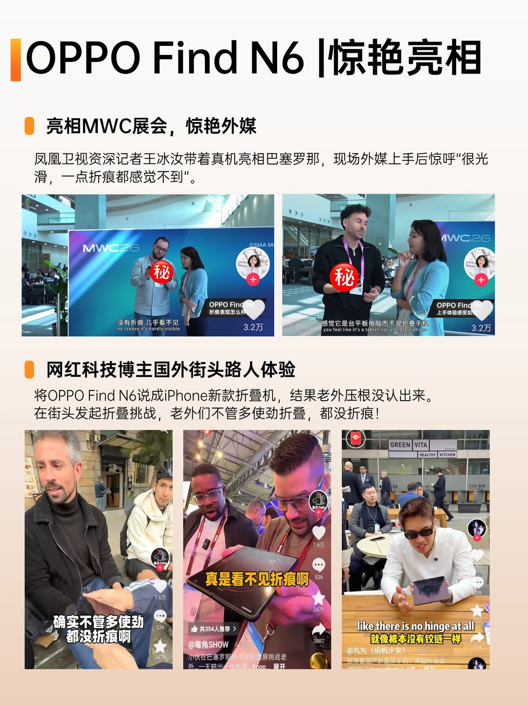 海内外媒体夸赞连连,《广东新闻联播》点名表扬它“折痕几乎不可见”,凰家评测和驻美记者王冰汝带着真机来到MWC,直接把老外给看呆了!各种疯狂蹂躏折叠都无折痕,还错认为是苹果折叠屏!