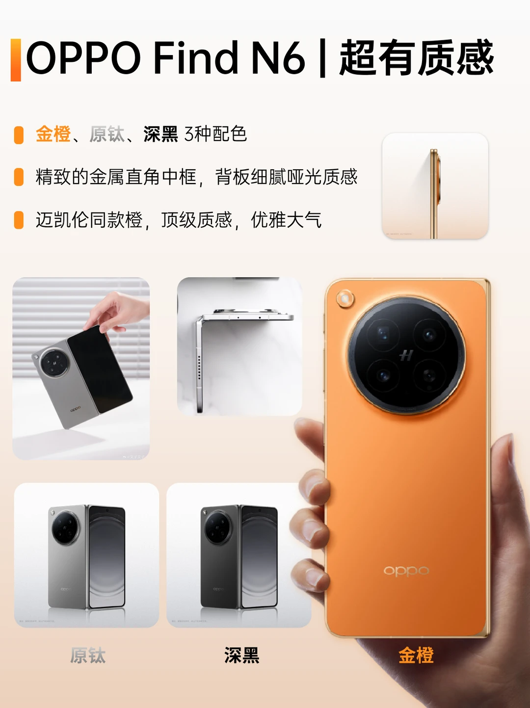 博主已经等不及OPPO Find N6发布了,金橙色深得我心🧡你喜欢哪个配色?欢迎评论区讨论~