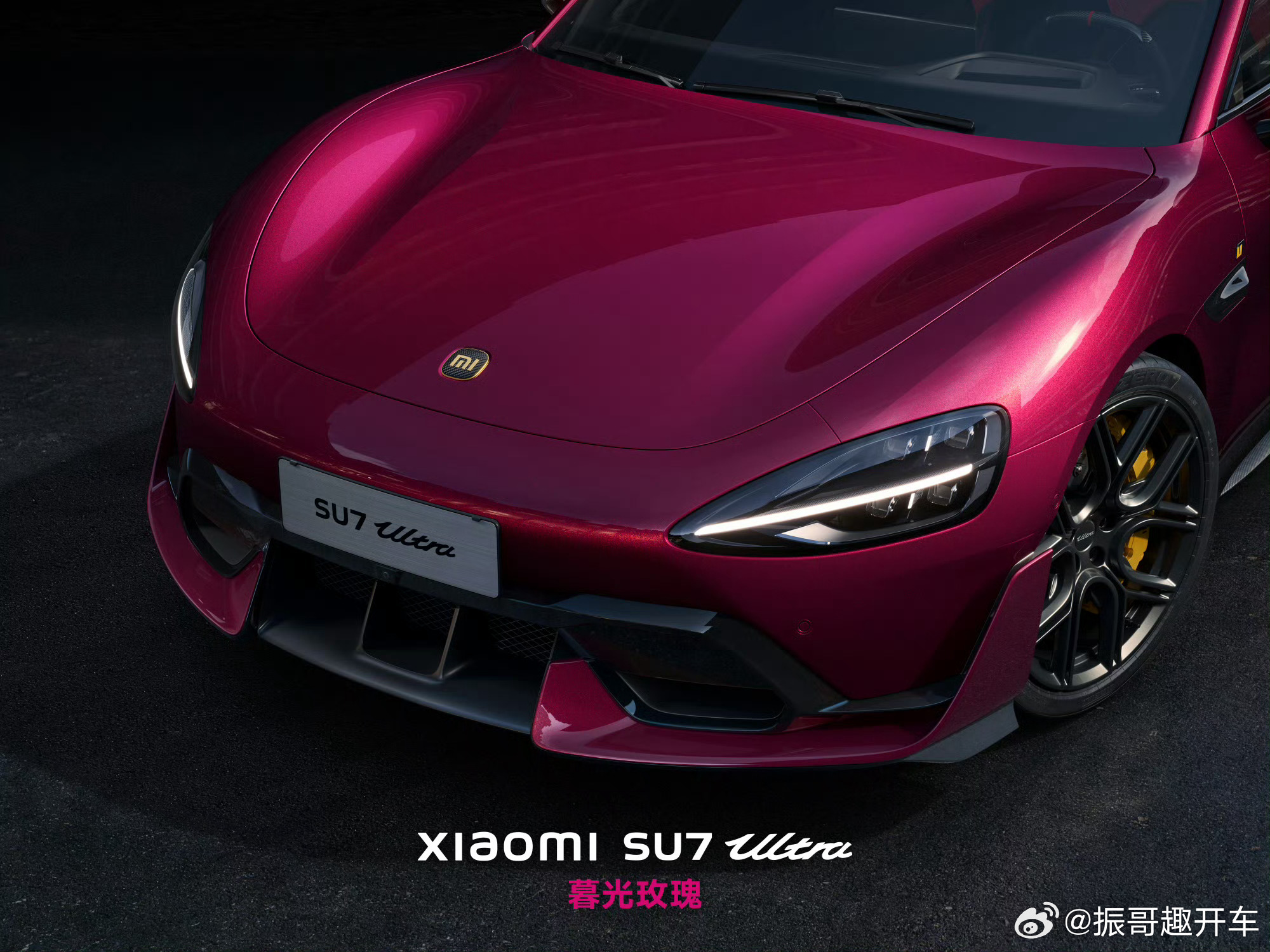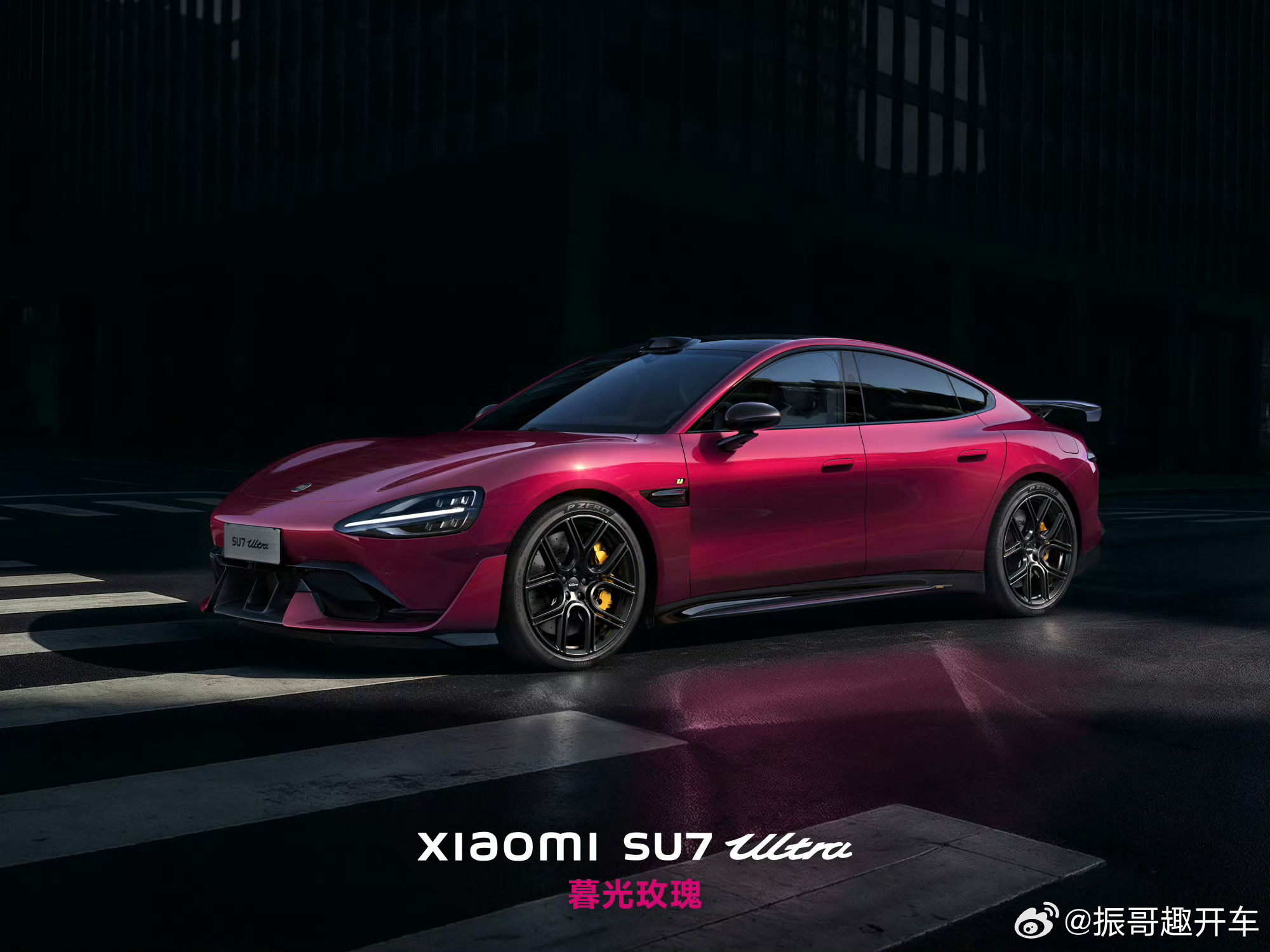 小米SU7 Ultra新增暮光玫瑰色,有点酷车漆以冷、暖双相色浆为基,融入精准配比的红色铝粉与珠光粉,呈现丰富层次,高光下,车身泛出璀璨的光粒,惊艳而充满力量;逆光处,则散发紫调暮色,静谧而高级;一组美图,感受它克制的惊艳