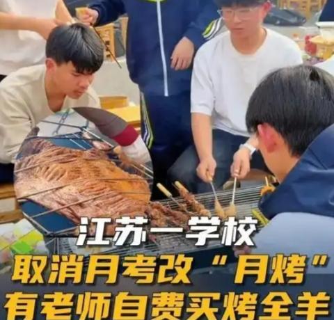 羡慕哭!连云港一学校取消月考改吃烧烤,2000名学生狂欢,这才是教育该有的样子! 谁能想到,校园里本该弥漫着试卷油墨味的月考日,却被浓浓的烧烤香取代!江苏连云港赣榆外国语学校,直接取消本月月考,把操场变成烧烤场,2000多名学生齐聚一堂,烤全羊、烤鸡、海鲜应有尽有,老师家长全程陪伴,这波操作直接炸翻全网,网友直呼:这样的学校请给我来一沓! 要知道,这学期开学才不到20天,紧凑的课程、即将到来的月考,早已让孩子们绷起了神经,每天埋在习题里,连抬头晒太阳的时间都少之又少。校方没有死守着“考试检验学习”的刻板规矩,反而读懂了孩子的疲惫,果断取消月考,用一场烟火气十足的烧烤宴,给全体学生松绑,这份懂与温柔,远比一张试卷更珍贵。 活动现场热闹又暖心,学生们十人一组,自带食材动手烤制,有的负责串签,有的负责翻烤,家长们全程帮忙,老师们也放下教案,和学生们围坐在一起说笑,3只烤全羊由老师自费准备,还有热心家长主动赞助,没有成绩排名的焦虑,没有刷题的疲惫,只有欢声笑语和满场烟火气。 有家长感慨:学要专心学,玩要尽兴玩,这样的教育才不压抑!反观当下,太多孩子被学业压力裹挟,小小年纪就被考试绑架,失去了该有的童真与快乐。而这所学校,用最接地气的方式告诉我们,教育从不是一味地施压,而是让孩子在温暖与松弛中成长。 这场“月考”变“月烤”的狂欢,烤的是美食,暖的是人心,治愈的是无数孩子紧绷的内心。比起冰冷的分数,孩子的身心健康、快乐成长,才是教育最该追求的答案。 网友们纷纷破防:当年我要是有这待遇,也不会厌学了!你羡慕这样的校园生活吗?觉得学校该多搞这类活动吗?朋友,你那里初中生取消月考了吗