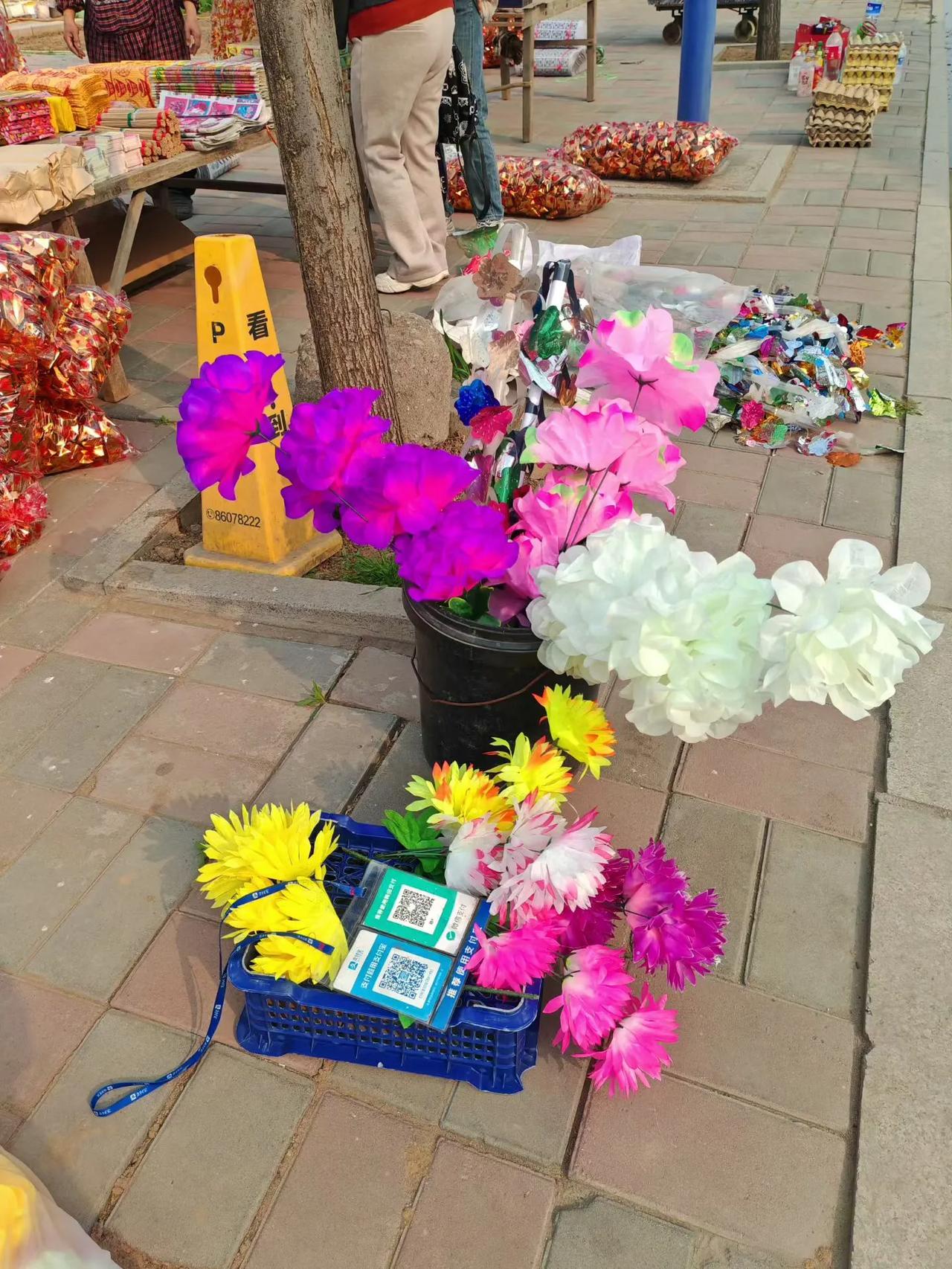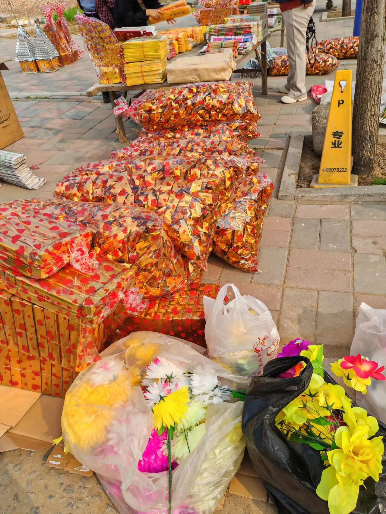 村头。祭品摊。清明气氛浓。 (韩联社) 不忘祖先来时的路。农村清明烧纸 扫墓野餐 农村清明烧纸 清明祭拜用品 扫墓野餐 上坟水果 祭花篮 祭花圈 清明市场