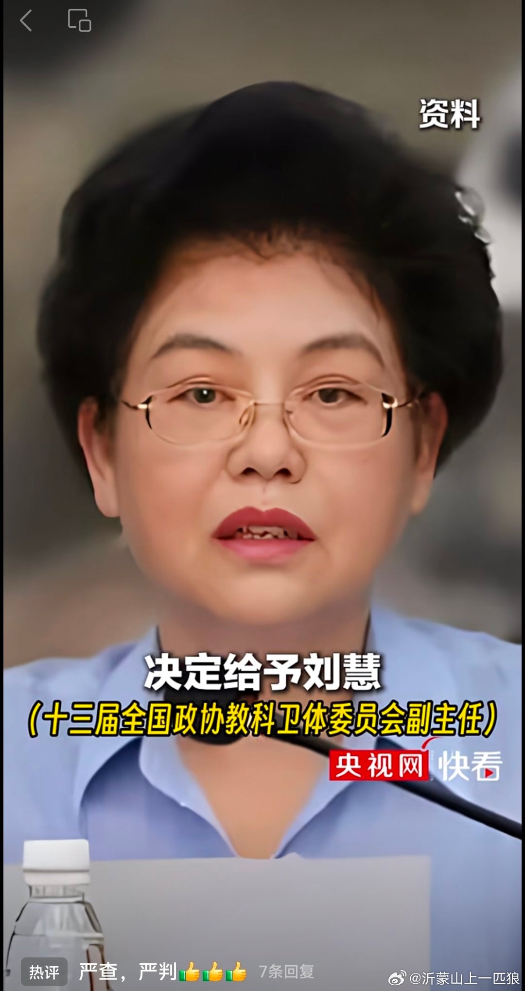 【经中央纪委常委会会议研究: 决定给予刘慧开除党藉处分,移送检察机关审查起诉】(