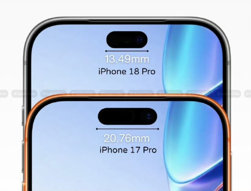 对比了一下IPhone17,iPhone18 灵动岛变小 了不少,变小是为了全面屏屏下摄,看吧以后一代比一代小,怎么样可以接受吗?