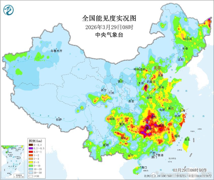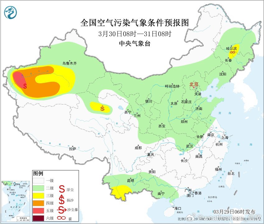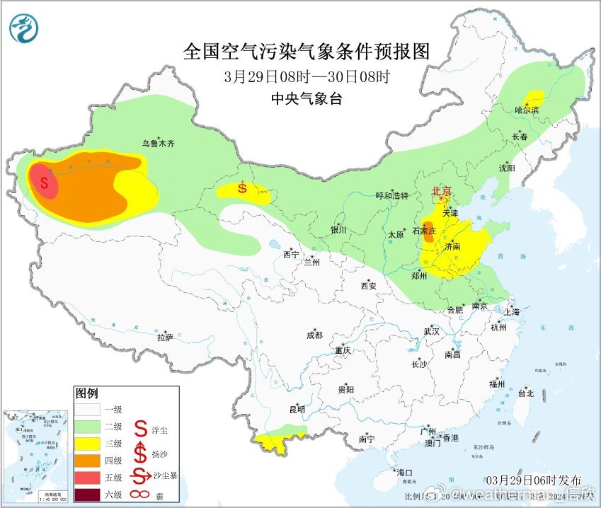 【雾 霾 沙尘】今晨在山西湖北湖南江西等地,出现大雾,山西长治和湖北武汉能见度一度不足100米,湖南益阳不足200米,出现强浓雾。从今晨空气质量看,黑龙江河北山东部分地区有中度污染或重度污染,黑龙江大庆出现严重污染,对应有霾。今天白天到明晨,随着冷空气到来,霾有望减弱或消散。此外云南南部今后三天可能受到境外传输影响也有霾。新疆塔里木盆地依然有沙尘。