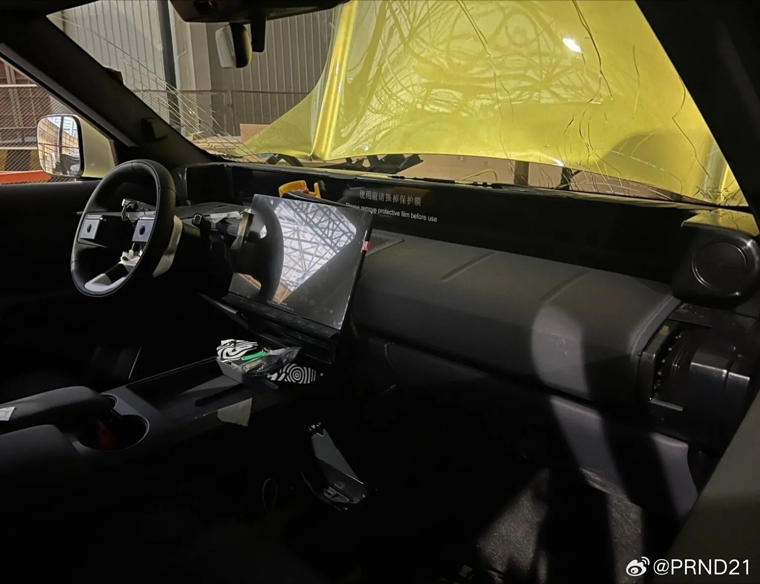 是个大车,方正造型,双方块头灯,封闭式中网,2/2/2座椅,长条屏幕+大屏幕,图里写了REEV所以应该是增程式插混车——大屏幕only和电驱并不利于越野,但没关系反正是城市SUV,何况路虎自己也没啥越野车了……