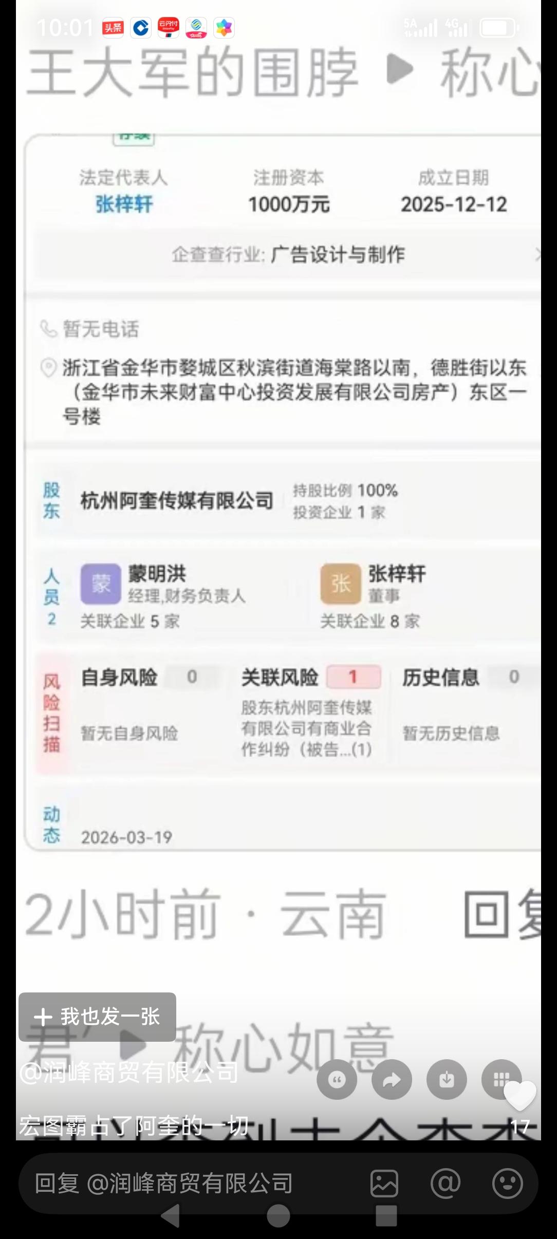 这几天关于云南阿奎传媒有限公司的法人与的问题!成了一些人的热议话题,前年的时候分公司开在贵州毕节,当时的法人是唐梦琪(大家口中的唐三妹)。而自从去年公司从杭州搬到金华未来财富中心,变成了别人。 有的人不懂,大部分的人,只有大公司,或者是集团公司。注册资金几百万,几千万,或者是几百万美元,几千万美元(外资形注册的)真正的老板都不是法人,大公司真正的老板都不是法人,这个只有在上千万,上亿的大企业,大集团里工作过的少部分人及自己开过大企业的人才懂。 所以说云南阿奎传媒有限公司的老板还是唐三妹,只是说明人家现在的公司不是以前的规模,变化很快,发展很快,成了集团公司了。希望真正的唐三妹的粉丝及希望唐三妹她越来越好的正能量的大家都明白这一点。