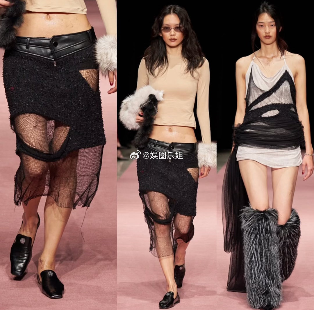 服装如情感蜕变一面是脆弱滑落的性感,一面是都市装甲般的粗粝,Y2K廓形混搭后工业未来感,斜向拉链与模块化闭合,让穿着者随心重组形态。大秀直击