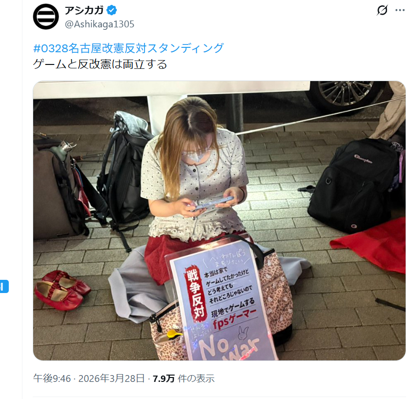 哈哈哈,挺可爱的,在(抗议)现场打游戏的 FPS 玩家。“虽然真心想在家里打游戏