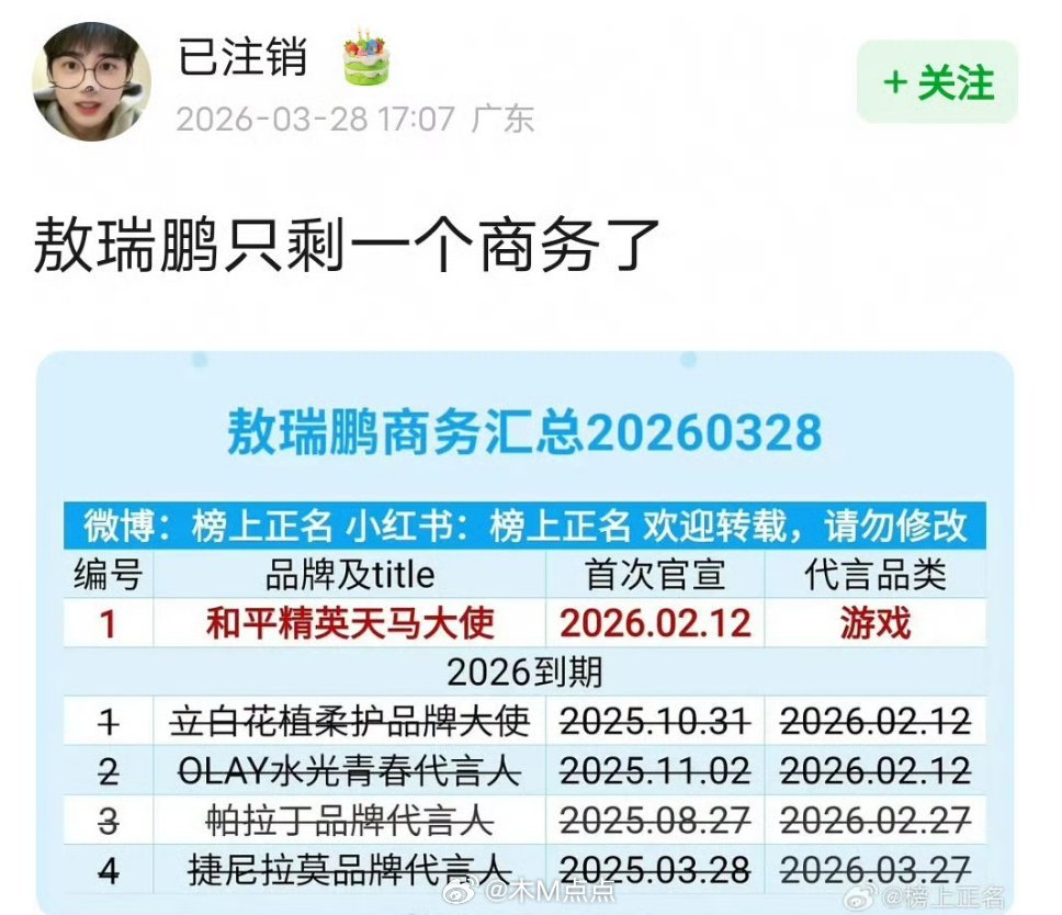感觉敖瑞鹏的商务太拖后腿了,只剩一个商务了~瓜主爆料他商务报价700w/年《朝雪