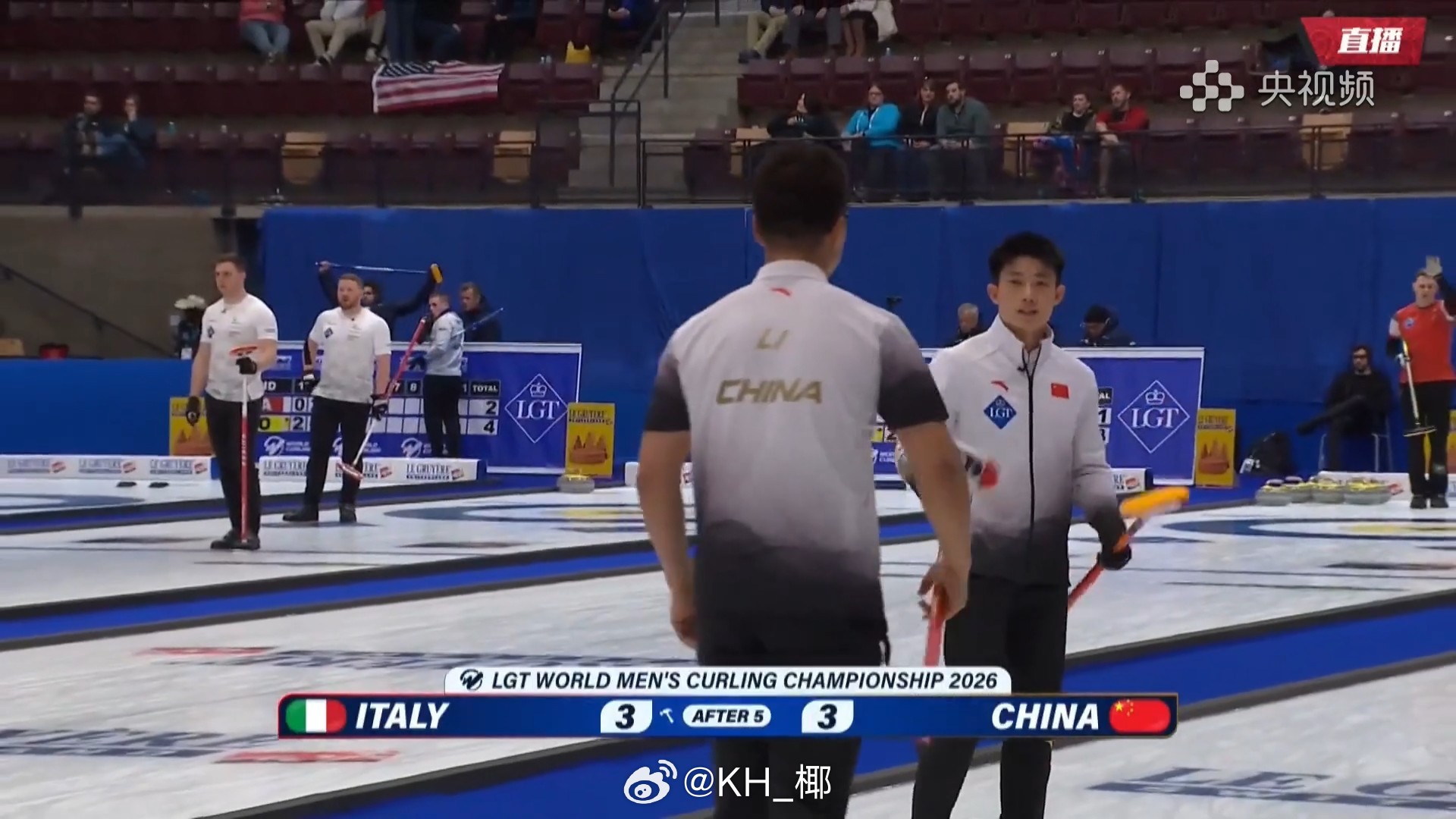 2026男子冰壶世锦赛 小费旋进,半场3-3