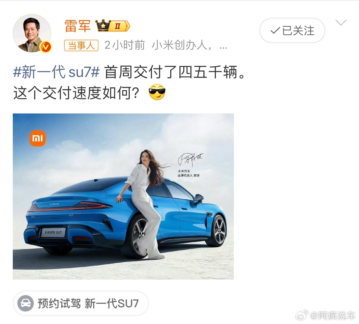 不过有意思的是,看评论区,雷总真是被搞怕了,说话不得不严谨一点。首周还差最后一天,过了今天再确定具体数据。雷军称今晚才知道首周交付能否过5千