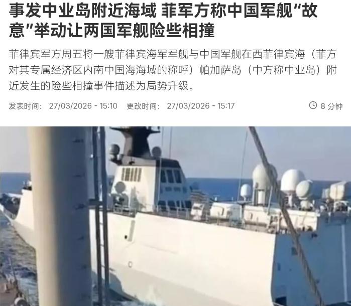 菲律宾非常愤怒!菲律宾方面一口咬定,中国军舰“故意”险些让两国军舰相撞!3月28日,根据法新社报道,菲律宾武装部队西菲律宾海事务发言人特立尼达表示,3月25日,在中业岛附近的一次海上行动中,一艘解放军海军054A型导弹护卫舰执行了一次危险的机动动作,菲海军坦克登陆舰“本格特”号成功避免了潜在的碰撞。 说白了,菲律宾一口咬定中国军舰“故意”险些撞船,表面看是菲方遭遇危险后的愤怒控诉,实则是一场精心策划的碰瓷炒作,目的是在中菲南海会谈前制造舆论筹码,把自己包装成受害者,太虚伪。 要知道,3月25日在中业岛附近,菲海军“本格特”号坦克登陆舰主动闯入中方管控海域,面对解放军荆州舰的反复喊话提醒,非但不避让,反而从左舷持续向右转向,蓄意逼近中方军舰,最近时两舰距离仅5到8米。菲方事后倒打一耙,指责中方054A舰危险机动,这话配上现场航迹,活像贼喊捉贼。 可这绝非意外,而是菲方有预谋的挑衅。3月28日正是中菲南海问题双边磋商机制会议重启的日子,菲方选在此时派舰碰瓷,就是想在谈判前抢占舆论高地,把“中国威胁”的帽子扣过来,为自己争取谈判筹码,太精明。 其实,菲舰的操作早有套路。这艘“本格特”号是1944年下水的二战老舰,和仁爱礁坐滩的“马德雷山”号是姊妹舰,菲方开着这艘破船碰瓷,打的就是“光脚不怕穿鞋”的算盘,赌中方会避让,好拍下画面回去吹嘘“硬刚”中国。 殊不知,中方早已看穿这套把戏。荆州舰全程保持专业规范操作,依法依规驱离,既没越线也没冲动,只是坚定维护主权。菲方以为能碰瓷成功,结果碰了一鼻子灰,最后只能自己转向规避,暴露了色厉内荏的本质。 更关键的是,菲方此举完全是自毁信誉。此前马科斯刚对中国示好,转头就派舰挑衅,这种当面一套背后一套的操作,只会让中菲互信进一步受损,也让国际社会看清其反复无常的面目。 要清楚,历史上不少小国在大国博弈中,都爱用“碰瓷”制造事端、博取同情。上世纪南海争端初期,越南也曾派老旧船只主动靠近中国舰艇,事后反诬中方挑衅,妄图混淆视听。但事实终究是事实,任何抹黑炒作都掩盖不了主权归属,也改变不了中国维护领土完整的决心。 而未来,菲律宾大概率会继续在南海搞小动作。一方面,它会在舆论上持续炒作“中国威胁”,拉拢美日等外部势力介入;另一方面,在中菲会谈中,菲方可能会借此次事件漫天要价,试图在岛礁、海域权益上获取更多利益。而中方会继续保持克制,用事实和证据回应抹黑,同时加强南海常态化管控,坚决挫败菲方的挑衅图谋。关键转折点就看菲方能否认清现实,停止碰瓷炒作,真正回归对话协商轨道,否则只会让双边关系持续紧张,自身也捞不到任何好处。 说到底,菲律宾指控中国军舰“故意撞船”,本质是一场为谈判造势的政治表演,是菲方在南海问题上投机取巧、试图浑水摸鱼的体现。中国在南海的维权行动合法合理、专业克制,任何碰瓷和抹黑都无法动摇我们捍卫主权的决心。 以上是小编个人看法,如果您也认同,麻烦点赞支持!有更好的见解也欢迎在评论区留言,方便大家一同探讨。