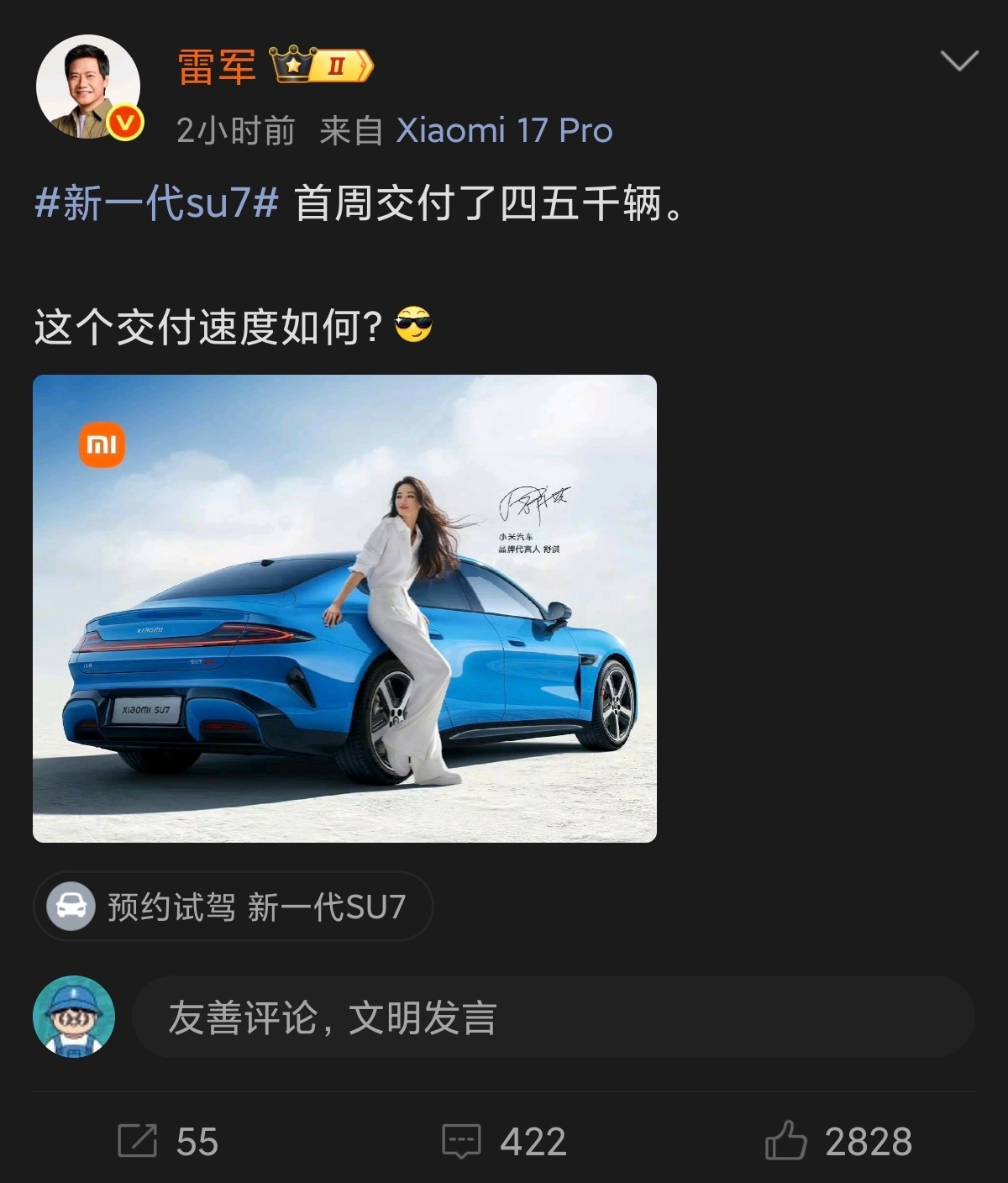 小米新一代SU7的交付你们觉得首周能不能过5000