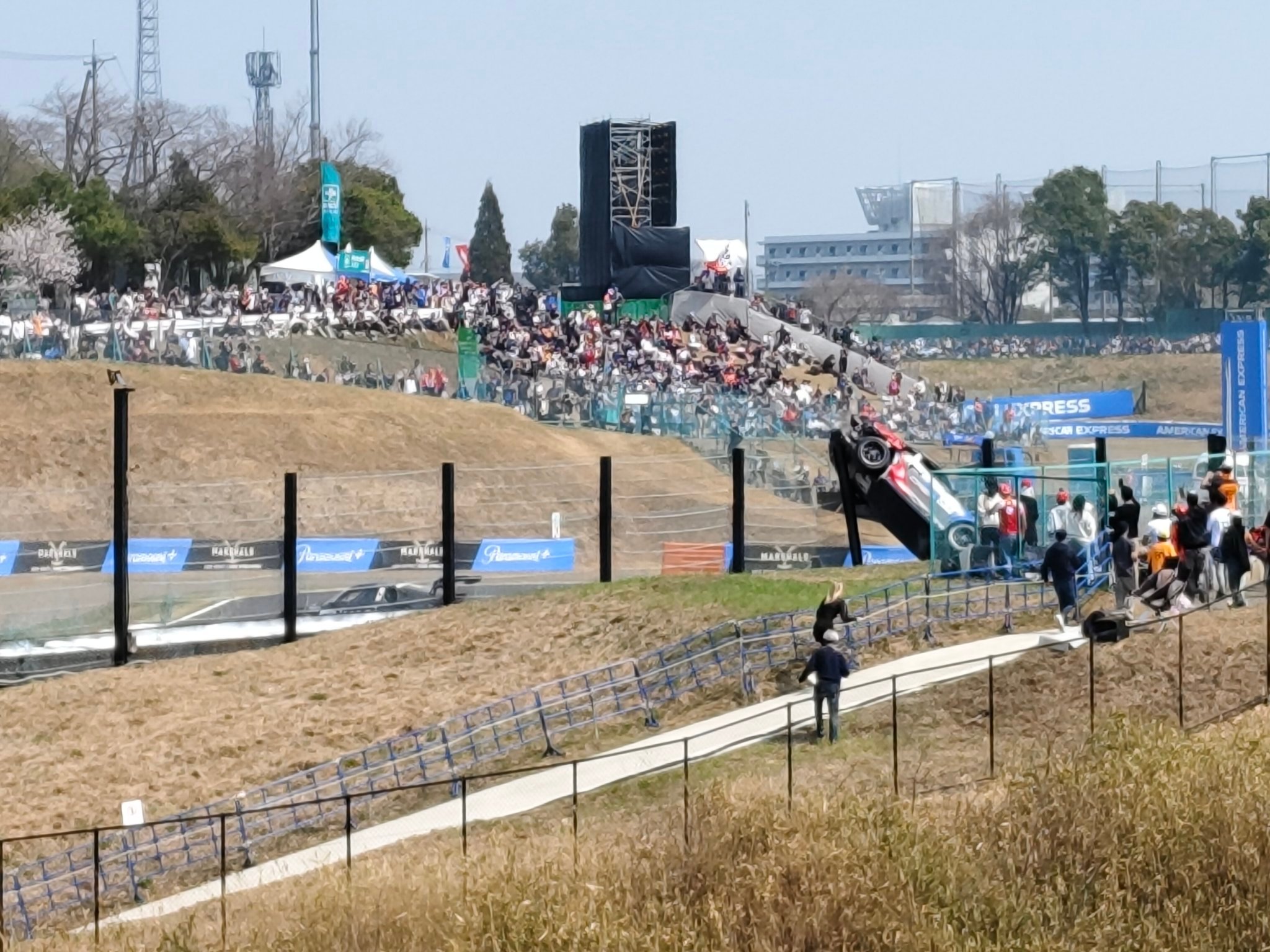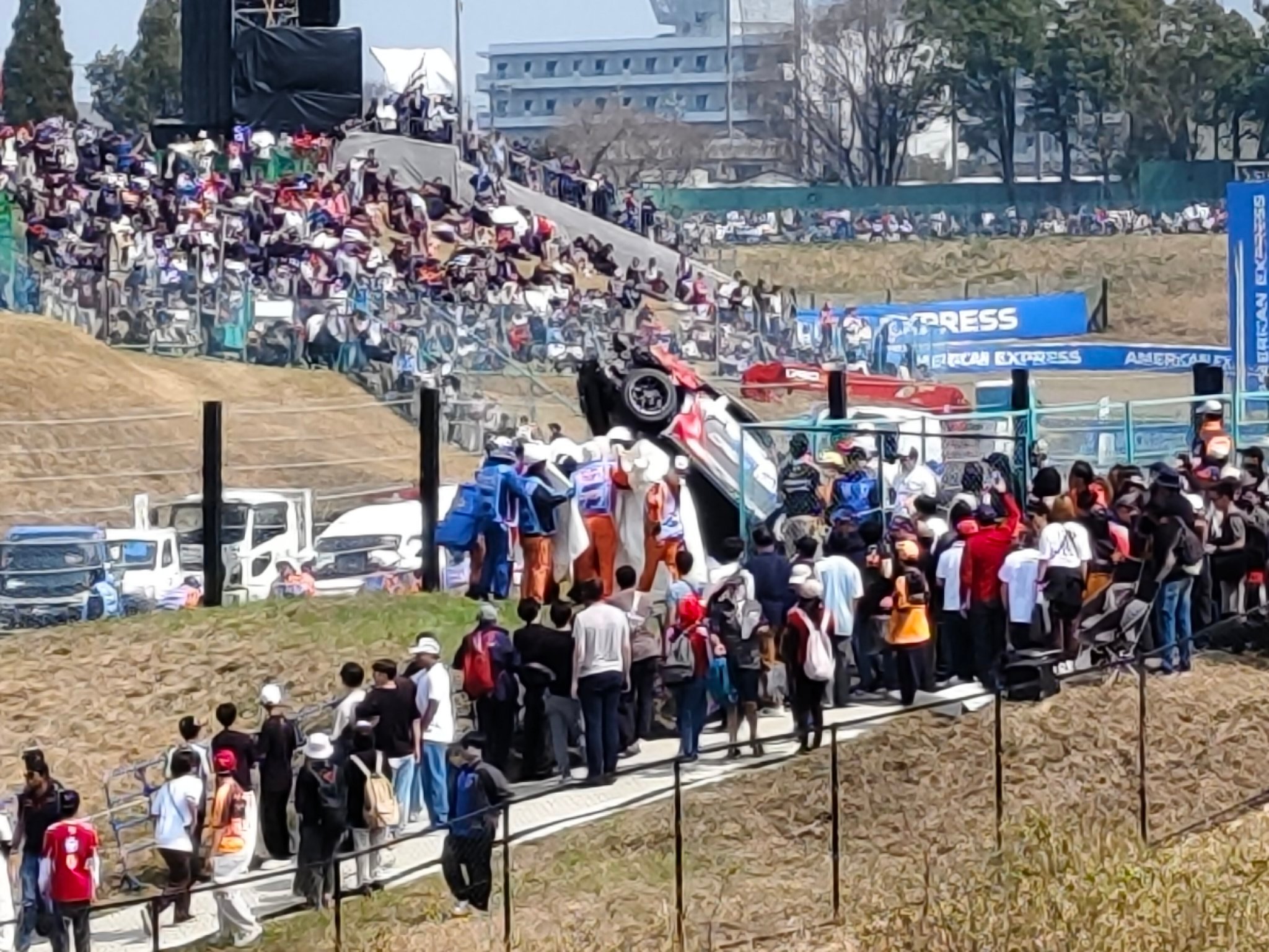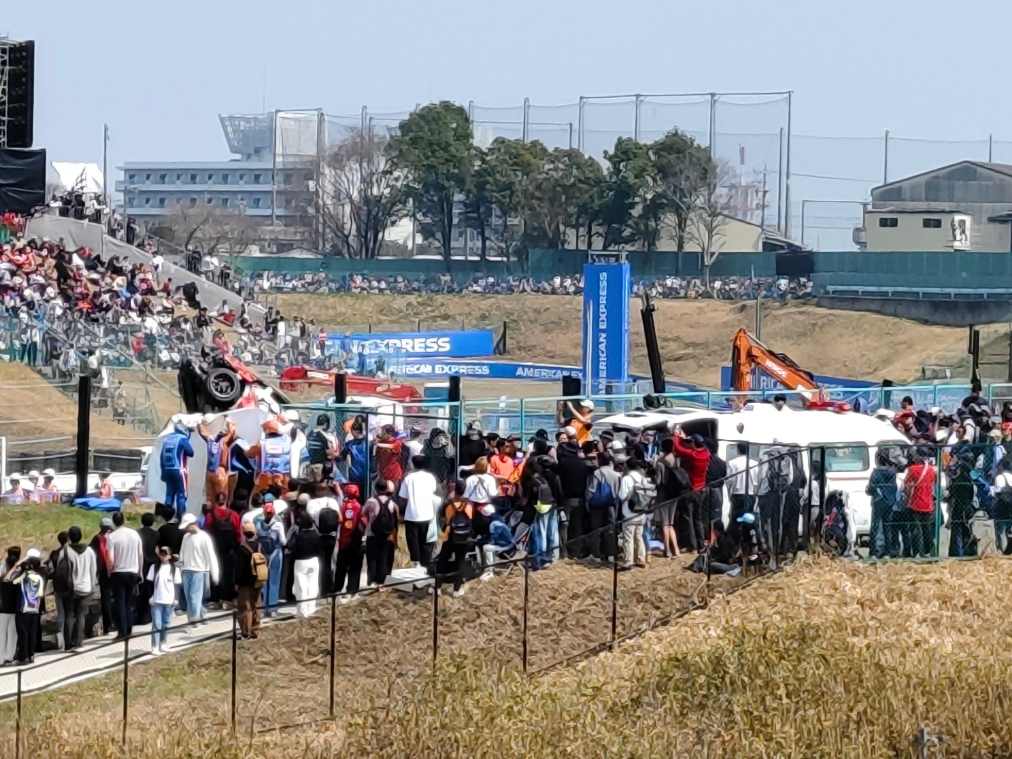 我去…F1日本🇯🇵大奖赛的周日垫场赛 日本保时捷卡雷拉杯发生严重撞车事故,导