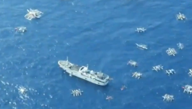相比之下,菲律宾方面出动了20多艘渔船,试图以“群狼战术”突破防线。然而,面对中方严密的海上阵列,菲方船只未能如愿进入预定作业水域。