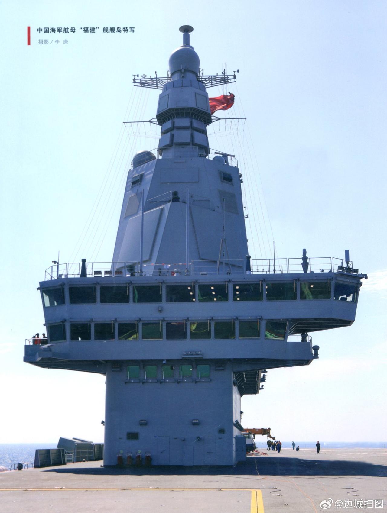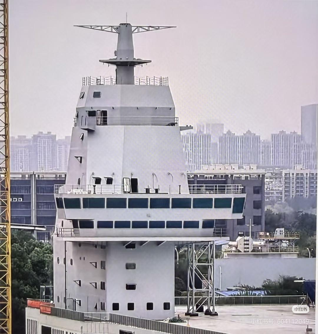 航母楼模型的最新进展,与去年的图像相比,没有显著变化。第三张图像为CV-18福建号舰岛以供比较。
