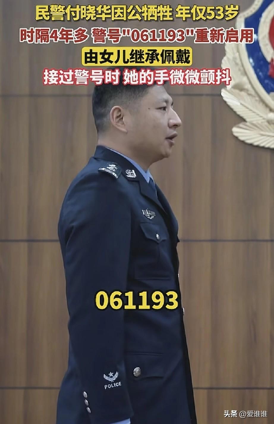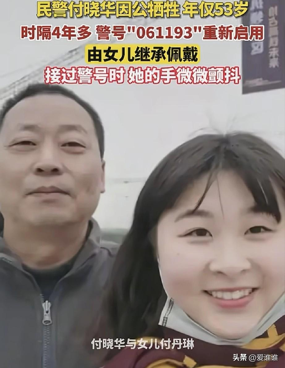 “长大后我就成了你!”湖北一民警因公殉职,年仅53岁,4年后烈士女儿从警,继承了父亲生前的警号“061193”,女儿眼含热泪的说:“要替父亲继续站好每一班岗!” 2021年11月26日,湖北省当阳市公安局熊家山派出所三级警长付晓阳像往常一样出门巡查,那天上午,他沿着长坂水库边走边看,水面映着灰蒙蒙的天,他用手机给同事发了几条语音信息,说水库边发现了外来入侵物种“加拿大一枝黄花”,又提到水面漂着油层,还问亭子上铺的油布是做什么用的。 这是他留在世上最后的声音,这位从警三十一年的老民警,在巡查过程中不慎落水,水花溅起又迅速归于平静,经抢救无效牺牲,终年五十三岁。 就在两小时前,他刚刚为群众调解完一起纠纷,那间调解室里还留着他喝了一半的茶杯。 付晓阳生前辗转八个基层所队,办过六百二十多起刑事案件,抓获过二百三十名犯罪嫌疑人,是大家公认的办案能手和优秀社区民警。 他走后,被追授个人三等功、当阳市优秀共产党员、荆楚楷模等荣誉。在出殡那天,他的女儿付丹琳还在读研究生,哭得几乎站不住,说无法想象没有父亲的日子,但为他感到骄傲。 其实付丹琳小时候并没想过要当警察,高考填志愿时她觉得这份工作太苦太累,选了自己喜欢的专业,真正让她改变想法的,是本科毕业后去西部山区支教的那一年。 在那片艰苦的土地上,她见过孩子们冻红的手指,也见过他们眼里亮起的希望,她慢慢开始理解父亲当年为什么愿意扎根基层,为什么总是忙忙碌碌却从不抱怨,那种为别人做点什么的责任感,在她心里悄悄扎了根。 2023年,付晓阳牺牲两年后,付丹琳研究生毕业,她放弃了高校和大型企业的工作机会,回到家乡,在宜昌市公安局交警支队当了一名辅警。那身制服穿在身上,她才真正体会到父亲当年肩上扛着的是怎样的分量,那是一双宽厚的手掌也未必撑得住的重。 2024年警察节前,她对着父亲的照片说,自己现在是辅警了,不同的肩章,同样的信仰,只有经历过磨炼,才更懂得这身制服的意义。 同年夏天,她通过了招警考试,成为宜都市公安局交警大队陆城中队的见习民警,从雨中疏导交通到处理酒驾醉驾,从勘查事故现场到调解纠纷,她一步步解锁着从警生涯的无数个第一次。 每一次出警,她都会想起父亲,想着如果是他,会怎么做。有时候深夜出勤回来,她会对着窗外发一会儿呆,仿佛那轮月亮也是父亲当年看过的。 2026年3月25日下午,湖北省宜都市公安局举行了一场特殊的警号重启仪式,那枚编号“061193”的警号,在父亲付晓阳牺牲后被封存了整整四年多,如今被郑重地交到付丹琳手中。 当她把警号佩戴在胸前,金属贴着她锁骨的皮肤,微微发烫,现场民警齐声喊出“061193,欢迎归队”,她响亮地答了一声“到”,那一刻,在场的许多民警都红了眼眶。 付丹琳在发言时说,父亲和外公都是基层人民警察,作为父亲的女儿她很骄傲,她说世界上最好的教育,不是讲多少大道理,而是父亲就是这样做的,她记得小时候父亲带她走过派出所的走廊,墙上挂着的锦旗被穿堂风吹得微微晃动,那是她对“警察”二字最初的印象。 这枚警号,对她来说不再是一个封存的编号,而是父亲注视着她的眼睛,是她胸前跳动的初心,也是她未来从警路上最坚硬的铠甲。 看到这件事很多人留言说看得掉眼泪,有人说这不只是一串数字,而是一对父女跨越生死的接力,有人说哪有什么岁月静好,不过是有人替我们负重前行。 还有人说起付丹琳从辅警到民警的选择,她本可以走更轻松的路,却选了最难走、最危险的那一条,只为离父亲更近一点。 一枚警号,两代人的坚守,在和平年代,公安队伍是牺牲最多、奉献最大的群体之一,警号的重启,不只是对一位因公牺牲民警的缅怀,更是一种精神的延续。 付丹琳用她的选择告诉所有人,有些东西不会因为生命的终止而消失,它会换一种方式,继续守护这片土地上的万家灯火!