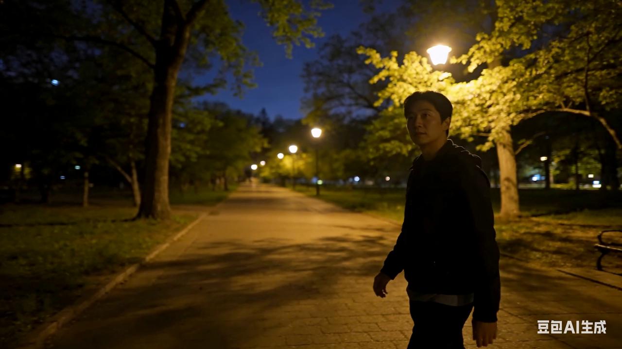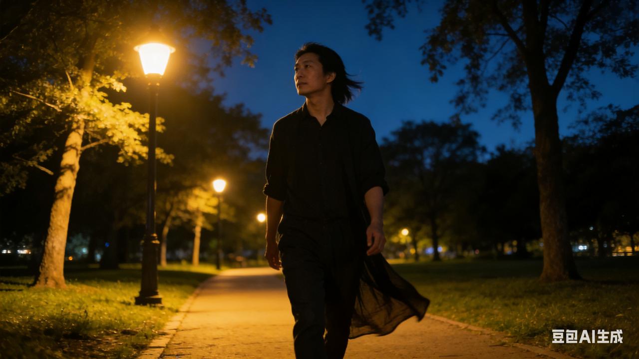 晚风轻拂,漫步公园,树影摇曳,尽享夜晚静谧惬意时光。